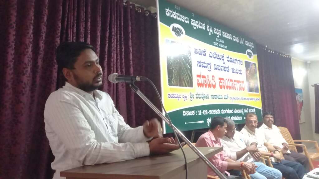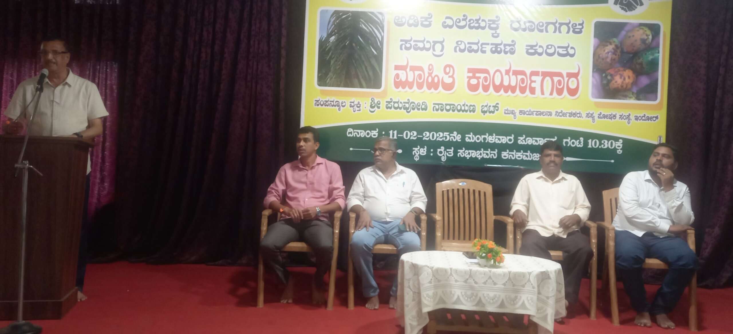 ಕನಕಮಜಲು ಪ್ರಾಥಮಿಕ ಕೃಷಿ ಪತ್ತಿನ ಸಹಕಾರಿ ಸಂಘದ ವತಿಯಿಂದ ಅಡಿಕೆ ಎಲೆಚುಕ್ಕೆ ರೋಗಗಳ ಸಮಗ್ರ ನಿರ್ವಹಣೆ ಕುರಿತು ಮಾಹಿತಿ ಕಾರ್ಯಾಗಾರವು ಸಹಕಾರಿ ಸಂಘದ ರೈತಸಭಾಭವನದಲ್ಲಿ ಫೆ.11ರಂದು ಬೆಳಿಗ್ಗೆ ನಡೆಯಿತು.