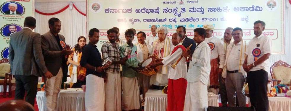 ಕರ್ನಾಟಕ ಅರೆಭಾಷೆ ಸಾಹಿತ್ಯ ಮತ್ತು ಸಂಸ್ಕೃತಿ ಅಕಾಡೆಮಿ ಮಡಿಕೇರಿ ಕರ್ನಾಟಕ ಸರ್ಕಾರ ಇದರ ವತಿಯಿಂದ ೨೦೨೨ ಮತ್ತು ೨೦೨೩ ನೇ ಸಾಲಿನ ಗೌರವ ಪ್ರಶಸ್ತಿ ಪ್ರದಾನ ಸಂಶೋಧನಾ ಪ್ರಬಂಧ ಮತ್ತು ಕೃತಿಗಳ ಬಿಡುಗಡೆ ಇಂದು ಮಡಿಕೇರಿಯ ಕೊಡಗು ಗೌಡ ಸಮಾಜದಲ್ಲಿ ನಡೆಯಿತು.