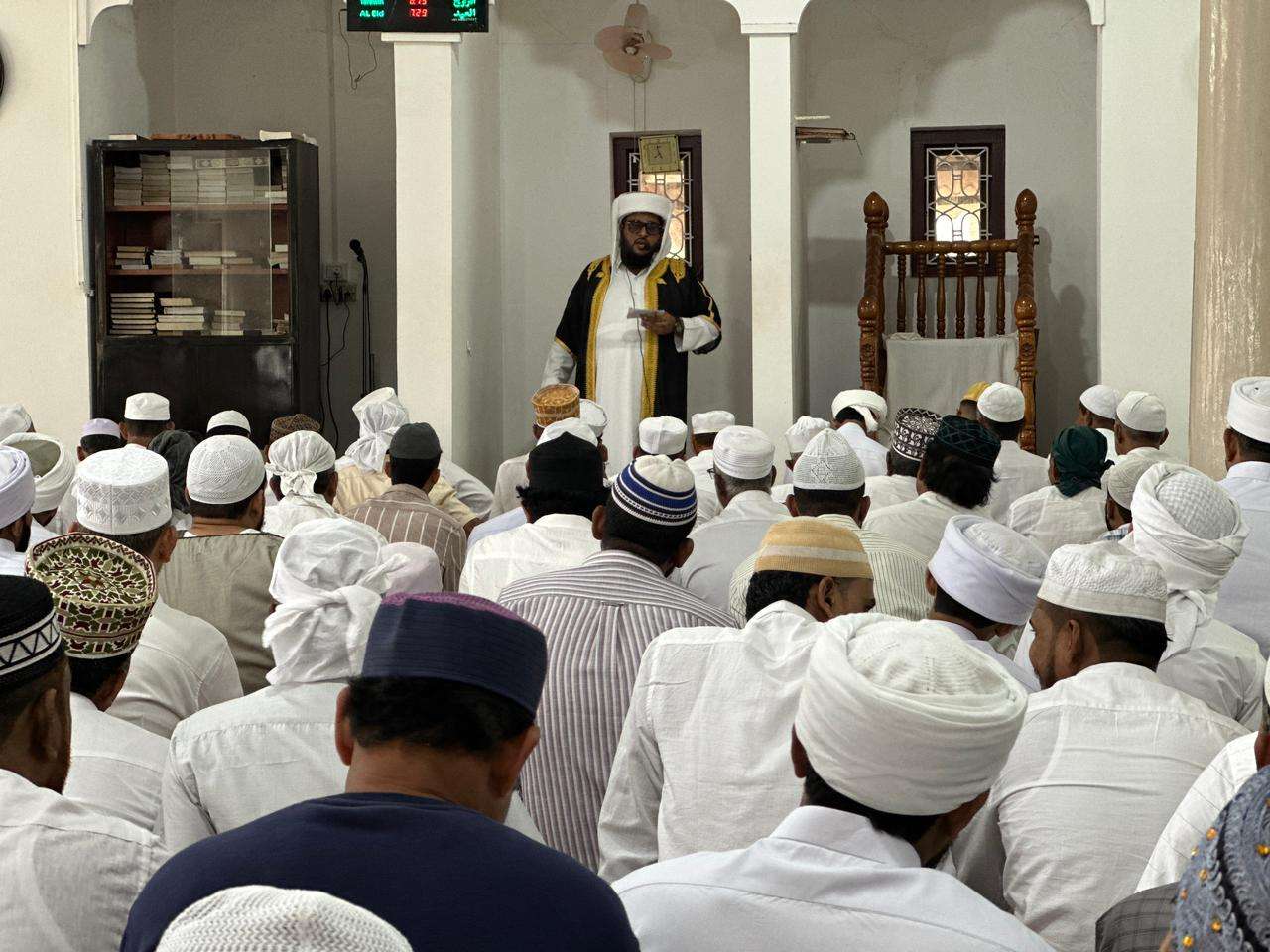 ಮಸೀದಿಯ ಮುಖ್ಯಗುರುಗಳಾದ ಬಹು|ನಸೀಹ್ ದಾರಿಮಿ ಯವರು ಈದ್ ನಮಾಝ್ ಗೆ ನೇತೃತ್ವ ನೀಡಿ, ಒಂದು ತಿಂಗಳಿನಿಂದ ಉಪವಾಸ ವೃತ ಆಚರಿಸಿ, ವಿಶೇಷ ನಮಾಝ್, ಪ್ರಭಾಷಣಗಳು, ಕುರಾನ್ ಪಾರಾಯಣ, ದಾನ ದರ್ಮ ಸೇರಿದಂತೆ ಹಲವಾರು ಪುಣ್ಯ ಕಾರ್ಯಗಳನ್ನು ಮಾಡಿ, ಹಬ್ಬದ ಹೆಸರಿನಲ್ಲಿ ಅದೆಲ್ಲವನ್ನು ಕಳೆಯುವಂತಾಗಬಾರದು ನಮ್ಮ ಹಬ್ಬಗಳು, ಇಸ್ಲಾಮಿ ಚೌಕಟ್ಟಿನೊಳಗೆ, ಎಲ್ಲಾ ಸಹೋದರ ದರ್ಮಗಳೊಂದಿಗೆ ಸೌಹಾರ್ದಯುತ ಮನೋಭಾವದೊಂದಿಗೆ ಮುಂದುವರಿಯಬೇಕೆಂದು ಈದ್ ಸಂದೇಶ ನೀಡಿದರು. ಹಬ್ಬದ ಸಂಭ್ರಮದಲ್ಲಿ ವಾಹಗಳಲ್ಲಿ ಸಂಚರಿಸುವವರು ಅತ್ಯಂತ ಸಂಯಮದಿಂದ ಹೋಗಬೇಕಾಗಿಯೂ ಅವರು ಕಿವಿಮಾತು ಹೇಳಿದರು.