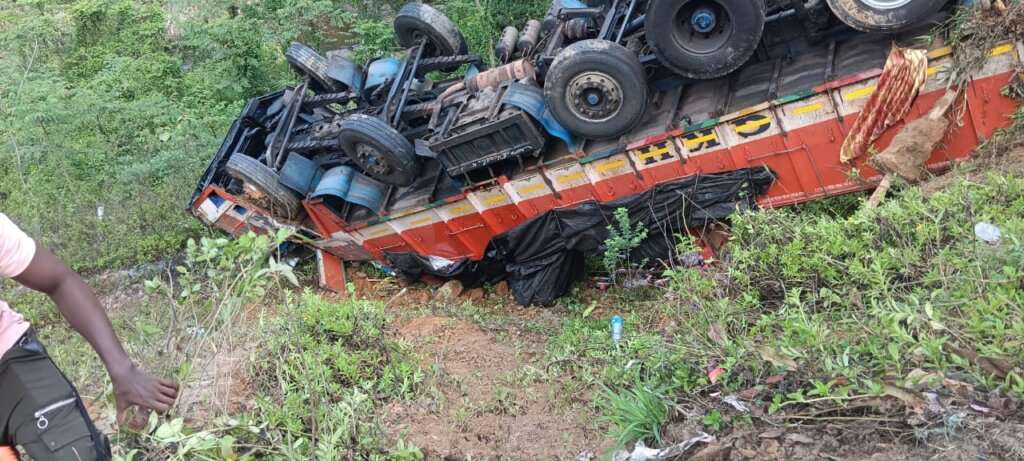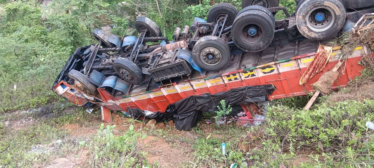 ಮಡಿಕೇರಿಯಿಂದ ಸರಕು ತುಂಬಿಕೊಂಡು ಮಂಗಳೂರು ಕಡೆ ಬರುತ್ತಿದ್ದ ಲಾರಿ ಚಾಲಕನ ನಿಯಂತ್ರಣ ಹಳ್ಳಕ್ಕೆ ಬಿದ್ದಿದ್ದು ಘಟನೆಯಿಂದ ಲಾರಿ ಸಂಪೂರ್ಣ ಜಖಂಗೊಡಿದೆ.