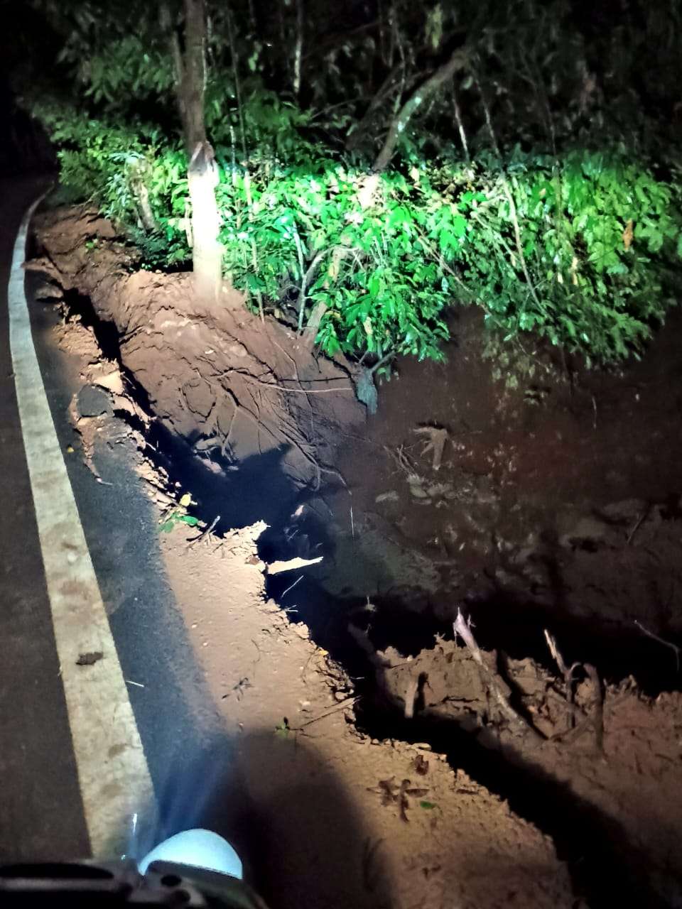 ರಸ್ತೆ ಬದಿಯಲ್ಲಿ ಪೈಪ್ ಅಳವಡಿಸಿದಲ್ಲಿ ಮಳೆ ನೀರು ನಿಂತು ರಸ್ತೆ ಬದಿಯ ಮಣ್ಣು ಹೊಳೆಗೆ ಜರಿದು ಬಿದ್ದಿದ್ದು ಡಾಮರು ರಸ್ತೆಯೂ ಬಿರುಕು ಬಿಟ್ಟಿರುವುದಾಗಿ ತಿಳಿದು ಬಂದಿದೆ.