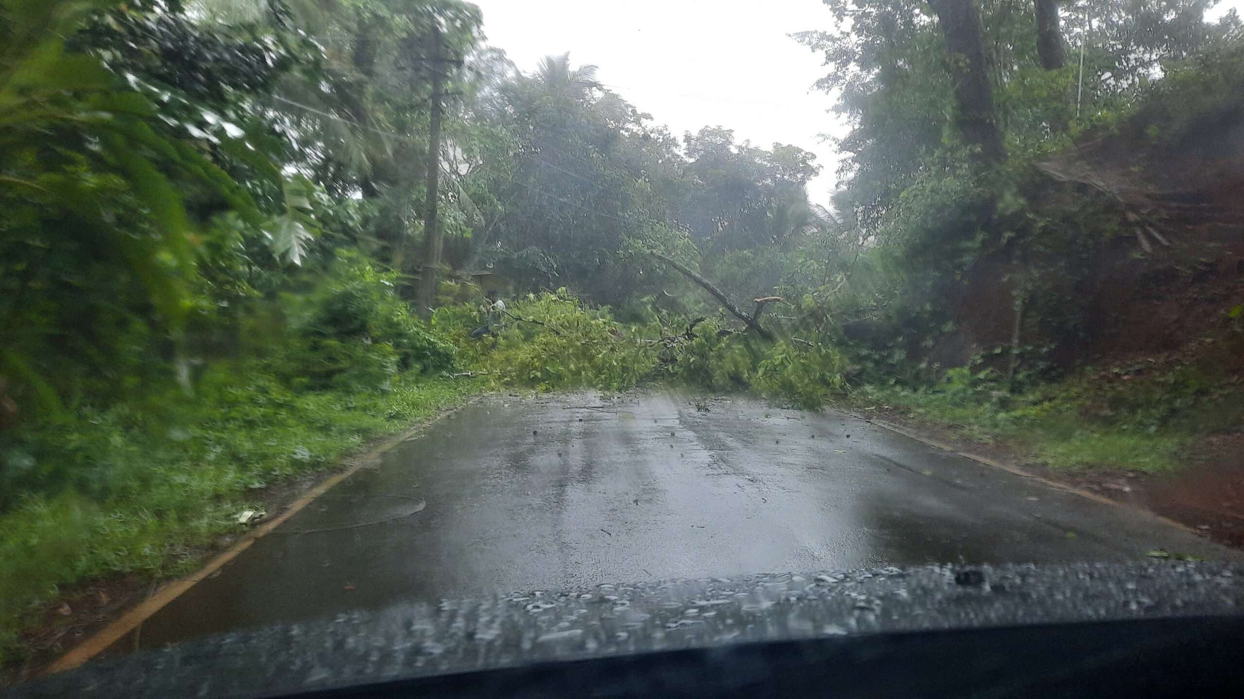 ಬಾರ್ಪಣೆ ಎಂಬಲ್ಲಿ ರಸ್ತೆಯ ಮೇಲೆ ಮರ ಬಿದ್ದು ಸಂಚಾರಕ್ಕೆ ಅಡಚಣೆ- ಸಾಲುಗಟ್ಟಿ ನಿಂತ ವಾಹನಗಳು