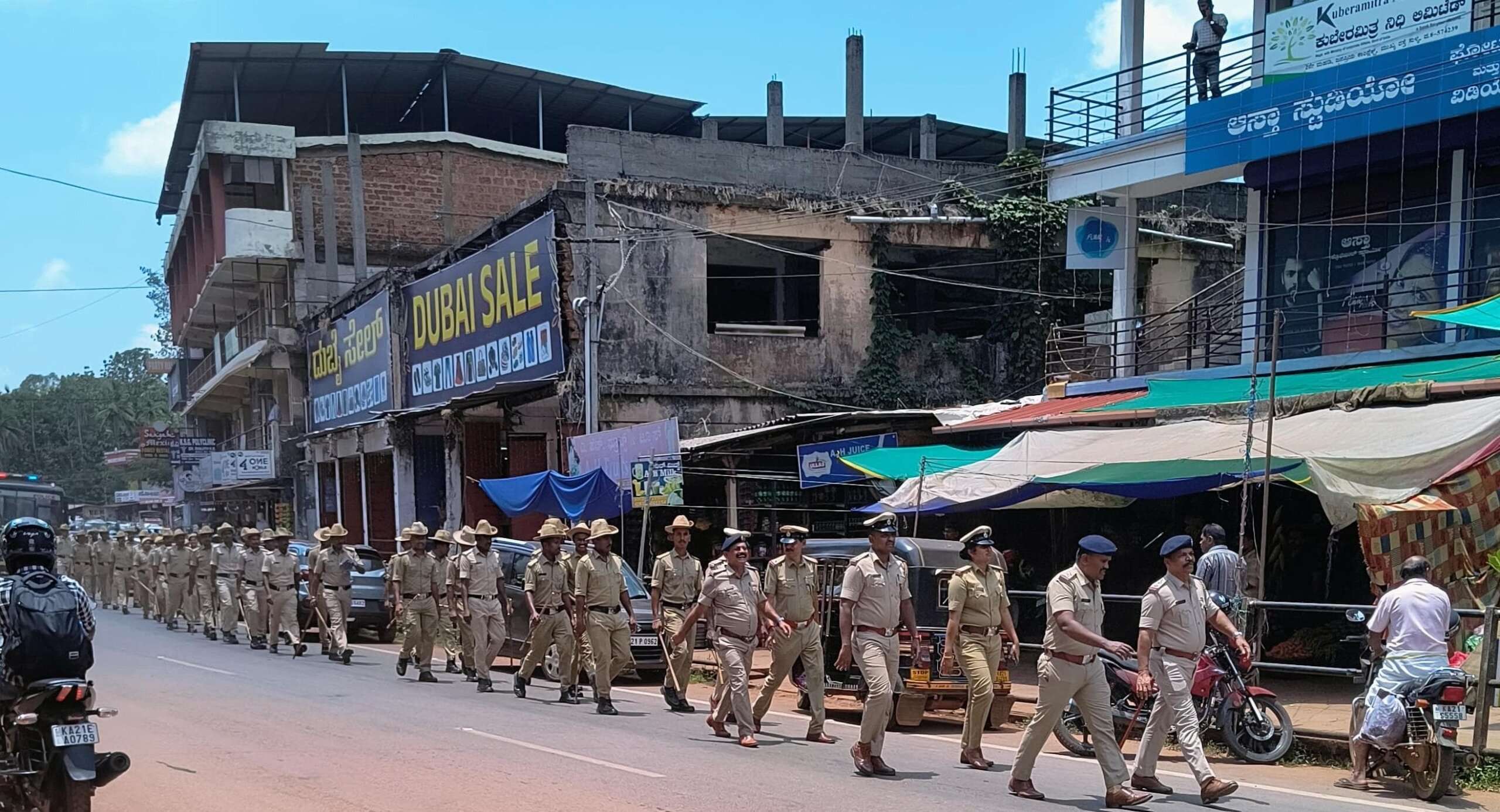 ಮುಖ್ಯ ಬೀದಿಯಲ್ಲಿ ಪೊಲೀಸ್ ಪಥ ಸಂಚಲನ