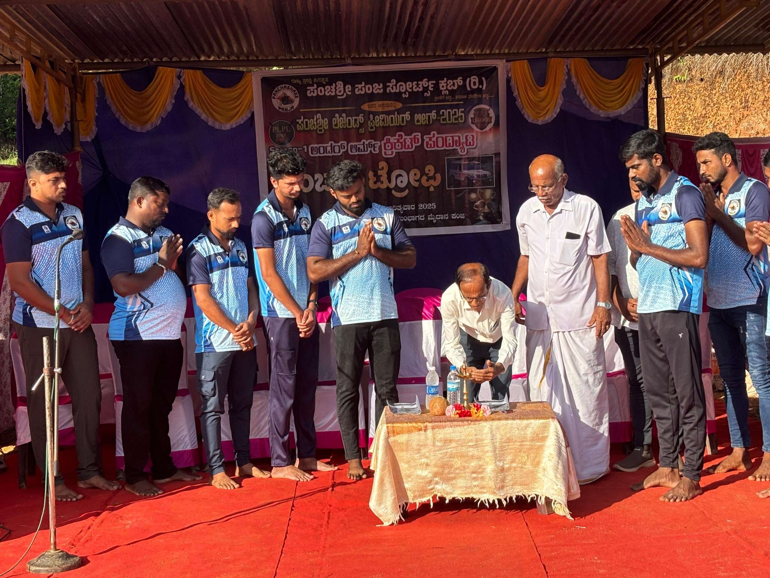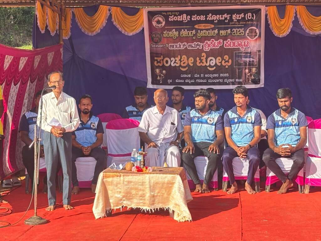 ರಾಜ್ಯ ಪ್ರಶಸ್ತಿ ಪುರಸ್ಕೃತ ಪಂಚಶ್ರೀ ಪಂಜ ಸ್ಪೋರ್ಟ್ಸ್ ಕ್ಲಬ್(ರಿ) ವತಿಯಿಂದ ಪಂಚಶ್ರೀ ಲೆಜೆಂಡ್ಸ್ ಪ್ರೀಮಿಯರ್ ಲೀಗ್ 2025 season-1 ಮೇ.11 ರಂದು ಕೋಟಿ ಚೆನ್ನಯ ಕ್ರೀಡಾಂಗಣ ಗರಡಿಯ ಮುಂಭಾಗದ ಮೈದಾನ ಪಂಜದಲ್ಲಿ 5 ತಂಡಗಳ ಲೀಗ್ ಮಾದರಿಯ ಅಂಡರ್ ಆರ್ಮ್ ಕ್ರಿಕೆಟ್ ಪಂದ್ಯಾಟವು ಬೆಳಗ್ಗೆ ಸಾಂಕೇತಿಕವಾಗಿ ಉದ್ಘಾಟಣೆಯನ್ನು ರಾಷ್ಟ್ರೀಯ ಹಿರಿಯ ಕ್ರೀಡಾಪಟು ಬಾಲಕೃಷ್ಣ ಕುದ್ವ ಹಾಗೂ ಅಂತರಾಷ್ಟ್ರೀಯ ಹಿರಿಯ ಕ್ರೀಡಾಪಟು ಕುಶಾಲಪ್ಪ ಗೌಡ ದೊಡ್ಡಮನೆ ಇವರು ಕ್ರಿಕೆಟ್ ಪಂದ್ಯಾಕೂಟಕ್ಕೆ ಚಾಲನೆಯನ್ನು ನೀಡಿದರು.