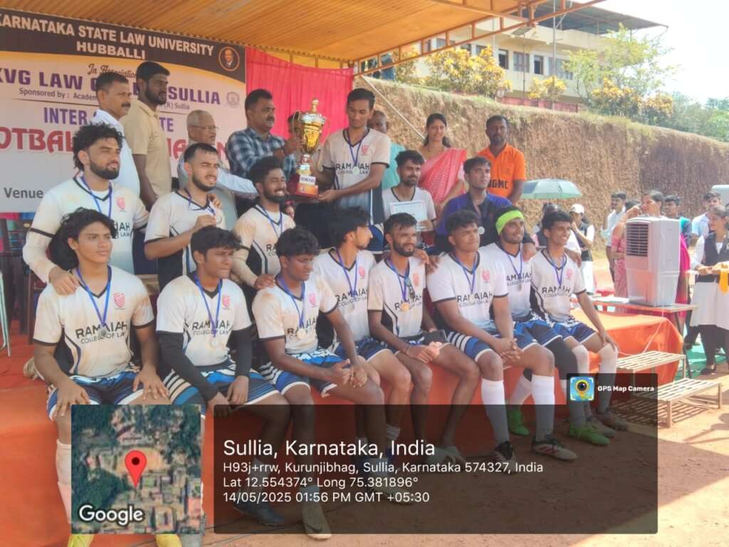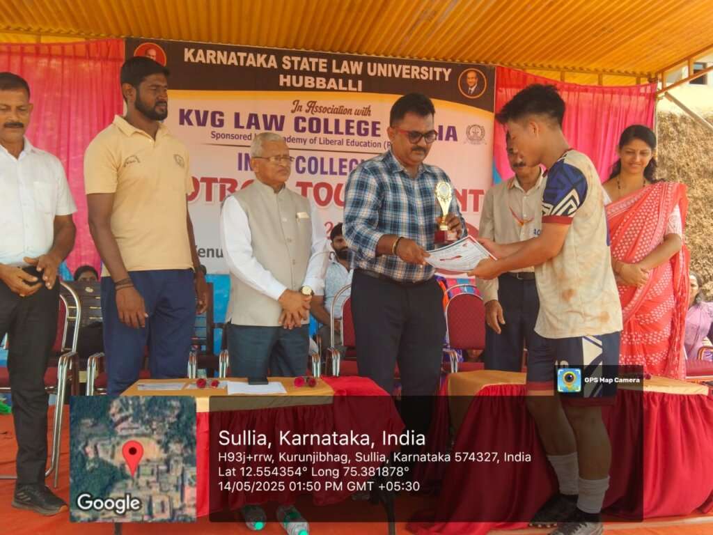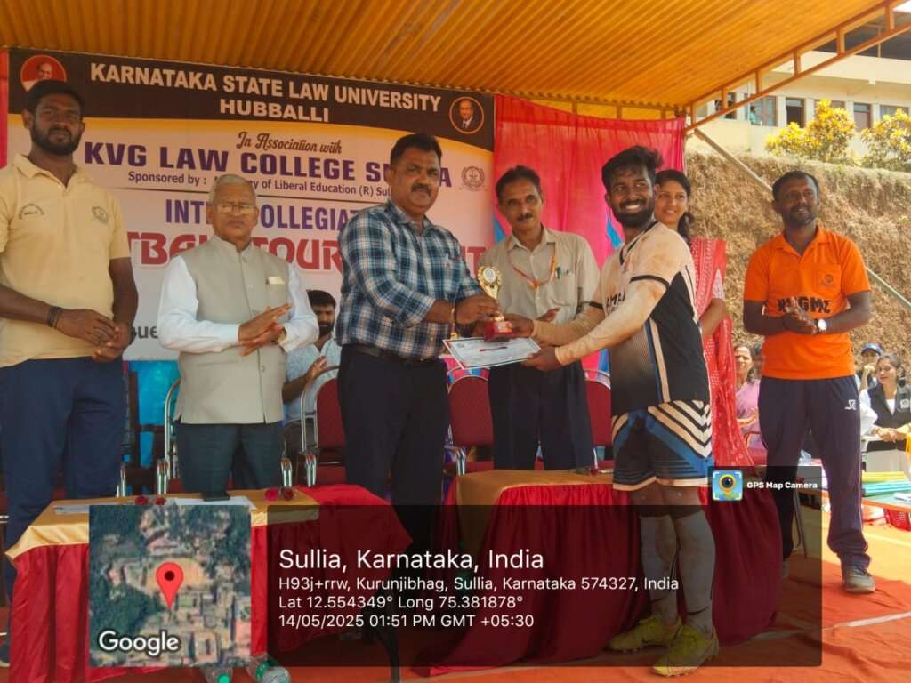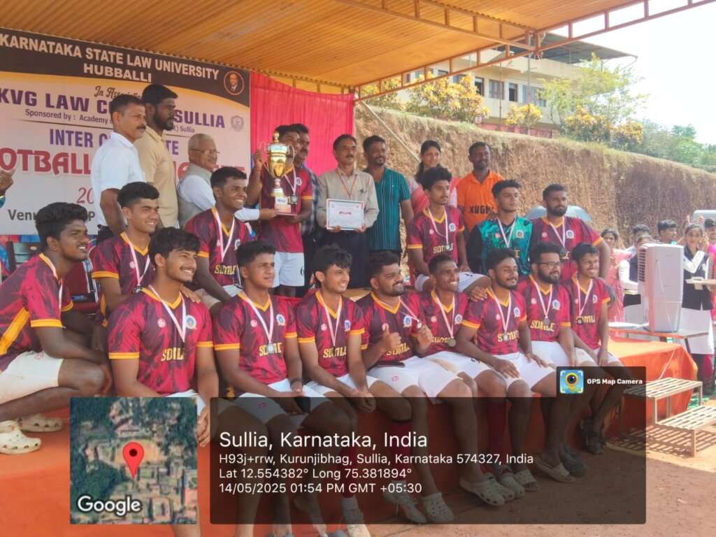 ಕರ್ನಾಟಕ ರಾಜ್ಯ ಕಾನೂನು ವಿವಿ ಮತ್ತು ಕೆವಿಜಿ ಕಾನೂನು ಕಾಲೇಜು ಸುಳ್ಯ ಇದರ ಆಶ್ರಯದಲ್ಲಿ ಕೆವಿಜಿ ಕ್ರೀಡಾoಗಣ ದಲ್ಲಿ 2 ದಿನಗಳ ಕಾಲ ನಡೆದ ಕರ್ನಾಟಕ ರಾಜ್ಯ ಕಾನೂನು ವಿವಿ ಮಟ್ಟದ ಫುಟ್ಬಾಲ್ ಪಂದ್ಯಾಟ ಸಮಾರೋಪ ನಡೆಯಿತು.