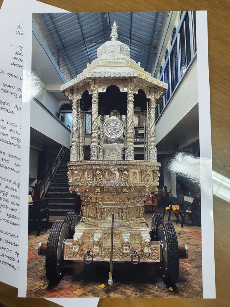 ಈ ವರ್ಷ ನವಂಬರ್ನಲ್ಲಿ ನಡೆಯುವ ಚಂಪಾಷಷ್ಠಿ ಜಾತ್ರೋತ್ಸವದ ಮೊದಲು ಬೆಳ್ಳಿರಥ ನಿರ್ಮಾಣಗೊಂಡು ಪುರಪ್ರವೇಶಿಸಲಿದೆ.ಆದುದರಿಂದ ಮುಂದಿನ ೬ ತಿಂಗಳ ಒಳಗೆ ರಥ ನಿರ್ಮಿತವಾಗಿ ದೇವರಿಗೆ ಸಮರ್ಪಣೆ ಆಗಬೇಕೆಂಬುದು ನಮ್ಮ ಸಂಕಲ್ಪ. ಎಂದು ನುಡಿದರು.