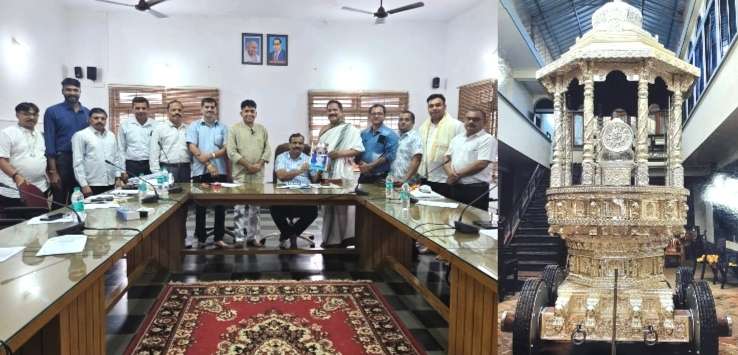 ಬೆಳಗ್ಗೆ ಶ್ರೀ ದೇವಳದ ಆಡಳಿತ ಕಚೇರಿ ಸಭಾಂಗಣದಲ್ಲಿ ರಥ ನೀಡಿಕೆ ಬಗ್ಗೆ ಸಮಾಲೋಚನಾ ಸಭೆ ನಡೆಯಿತು.ಸಭೆಯಲ್ಲಿ ಶಿಲ್ಪಿಗಳು ಬೆಳ್ಳಿರಥದ ಮಾದರಿ ಭಾವಚಿತ್ರವನ್ನು ಆಡಳಿತ ಮಂಡಳಿಗೆ ನೀಡಿದರು.ಅಲ್ಲದೆ ವಿವಿಧ ವಿಚಾರಗಳ ಬಗ್ಗೆ ಸಭೆಯಲ್ಲಿ ಚರ್ಚಿಸಲಾಯಿತು. ಈ ಸಂದರ್ಭ ಕಾರ್ಯನಿರ್ವಹಣಾಧಿಕಾರಿ ಅರವಿಂದ ಅಯ್ಯಪ್ಪ ಸುತಗುಂಡಿ, ಶ್ರೀ ದೇವಳದ ವ್ಯವಸ್ಥಾಪನಾ ಸಮಿತಿ ಅಧ್ಯಕ್ಷ ಹರೀಶ್.ಎಸ್.ಇಂಜಾಡಿ, ಸಹಾಯಕ ಕಾರ್ಯನಿರ್ವಹಣಾಧಿಕಾರಿ ಎಸ್.ಜೆ.ಯೇಸುರಾಜ್, ವ್ಯವಸ್ಥಾಪನಾ ಸಮಿತಿ ಸದಸ್ಯ ಅಶೋಕ್ ನೆಕ್ರಾಜೆ, ಪಂಚ ಗ್ಯಾರಂಟಿ ಅನುಷ್ಠಾನ ಸಮಿತಿ ತಾಲೂಕು ಅಧ್ಯಕ್ಷ ಸುಧೀರ್ ಕುಮಾರ್ ಶೆಟ್ಟಿ, ದಾನಿಗಳ ಕಚೇರಿ ಮುಖ್ಯಸ್ಥರಾದ ದಿನೇಶ್ ಮಡ್ತಿಲ ಮತ್ತು ವಸಂತ ಕಿರಿಭಾಗ, ಮಾಸ್ಟರ್ಪ್ಲಾನ್ ಸಮಿತಿ ಸದಸ್ಯರಾದ ಸತೀಶ್ ಕೂಜುಗೋಡು, ಲೋಲಾಕ್ಷ ಕೈಕಂಬ, ಪವನ್ ಎಂ.ಡಿ, ದೇವಳದ ಅಭಿಯಂತರ ಉದಯ ಕುಮಾರ್, ಸ್ಥಳೀಯರಾದ ಅಭಿಲಾಷ್, ಕಿಶೋರ್ ಅರಂಪಾಡಿ, ಸಿಬ್ಬಂದಿಗಳಾದ ಸರಸ್ವತಿ, ಕೃಷ್ಣಪ್ರಸಾದ್ ಕೆ.ಜಿ.ಭಟ್, ಸುಪ್ರಿತ್ ಕುಲ್ಕುಂದ ಮತ್ತಿತರರು ಉಪಸ್ಥಿತರಿದ್ದರು