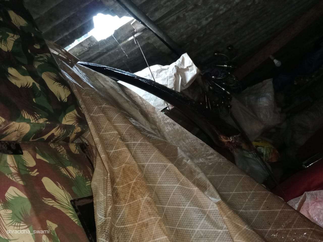 ಇಂದು ಮಧ್ಯಾಹ್ನ ಸುರಿದ ಭಾರಿ ಗಾಳಿ ಮಳೆಗೆ ಪಕ್ಕದ ಮನೆಯವರ ತೆಂಗಿನ ಮರದಿಂದ ಗರಿಯೊಂದು ಬಿದ್ದು ಸ್ವಾಮಿ ಸೌಂಡ್ಸ್ ರವರ ಮನೆಯ ಸೀಟ್ ಹಾನಿಗೊಳಗಾಗಿ ಅಪಾರ ನಷ್ಟ ಉಂಟಾಗಿದೆ.