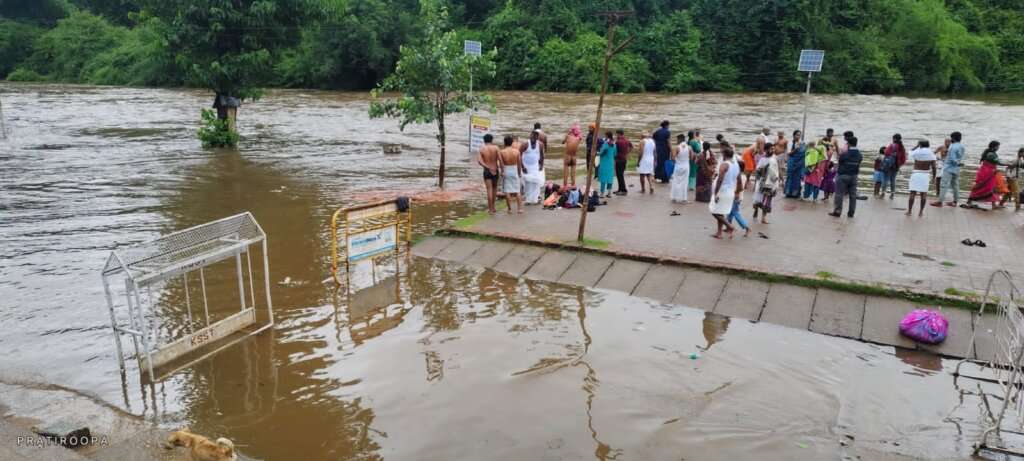 ಕುಕ್ಕೆ ಸುಬ್ರಹ್ಮಣ್ಯದ ಸ್ನಾನಘಟ್ಡ ಕುಮಾರಧಾರಾ ಸ್ನಾನಘಟ್ಟ ಮುಳುಗಡೆ‘