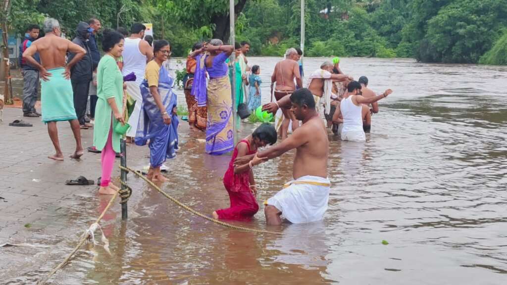 ಸದ್ಯಕ್ಕೆ ಭಕ್ತಾಧಿಗಳಿಗೆ ಸ್ನಾನಘಟ್ಟದ ಬಳಿ ಇಳಿಯದಂತೆ ಭದ್ರತಾ ಸಿಬ್ಬಂದಿಗಳು ನೋಡಿಕೊಳ್ಳುತಿದ್ದಾರೆ.
