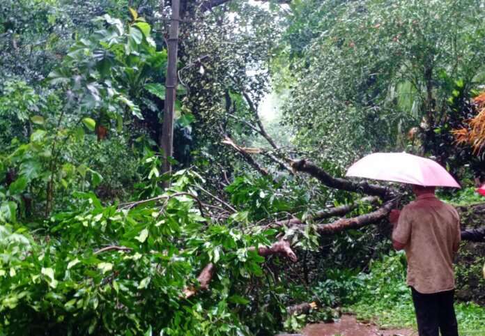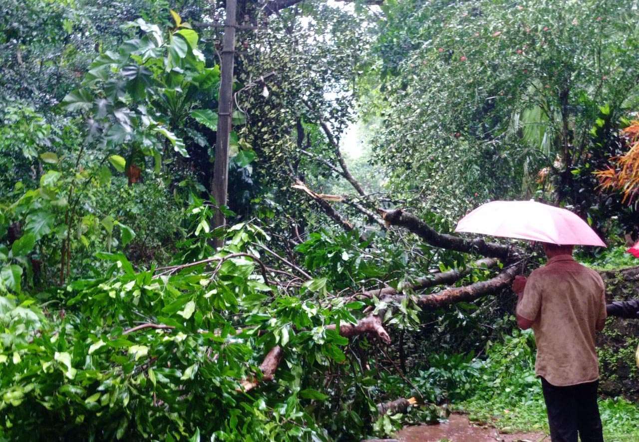 ಭಾರೀ ಗಾಳಿ – ಮಳೆ: ಸಂಪಾಜೆ ಕೈಪಡ್ಕದಲ್ಲಿ ರಸ್ತೆಗೆ ಅಡ್ಡಲಾಗಿ ಬಿದ್ದ ಮರ May 27, 2025 0 FacebookTwitterWhatsApp ವಿದ್ಯುತ್ ಕಂಬಗಳಿಗೆ ಹಾನಿ ದ.ಕ ಸಂಪಾಜೆ ಗ್ರಾಮದ ಕೈಪಡ್ಕದಲ್ಲಿ ಗಾಳಿ ಮಳೆಗೆ ಮರವೊಂದು ರಸ್ತೆಗೆ ಅಡ್ಡಲಾಗಿ ಬಿದ್ದು ವಿದ್ಯುತ್ ಕಂಬಗಳಿಗೆ ಹಾನಿಯಾದ ಘಟನೆ ಮೇ .೨೭ ರಂದು ಸಂಭವಿಸಿದೆ.ಇದರಿಂದ ವಿದ್ಯುತ್ ವ್ಯತ್ಯಯ ಗೊಂಡಿದ್ದು , ವಾಹನ ಸಂಚಾರಕ್ಕೆ ಅಡ್ಡಿ ಉಂಟುಮಾಡಿದೆ .