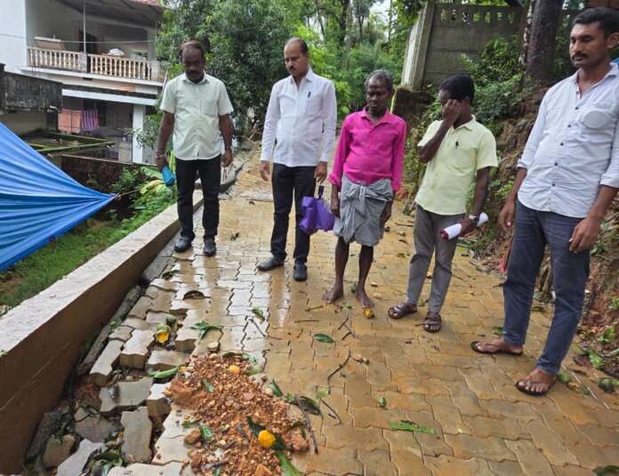 ಬಾರೀ ಮಳೆಯ ಪರಿಣಾಮ ಸುಳ್ಯದ ಕೆರೆಮೂಲೆ ವಾರ್ಡ್ನಲ್ಲಿ ಇಂಟರ್ ಲಾಕ್ ಅಳವಡಿಸಿದ ರಸ್ತೆ ಕುಸಿದಿದ್ದು ವಾರ್ಡ್ ಸದಸ್ಯರಾದ ಎಂ.ವೆಂಕಪ್ಪ ಗೌಡರು ಭೇಟಿ ಪರಿಶೀಲನೆ ನಡೆಸಿದರು.