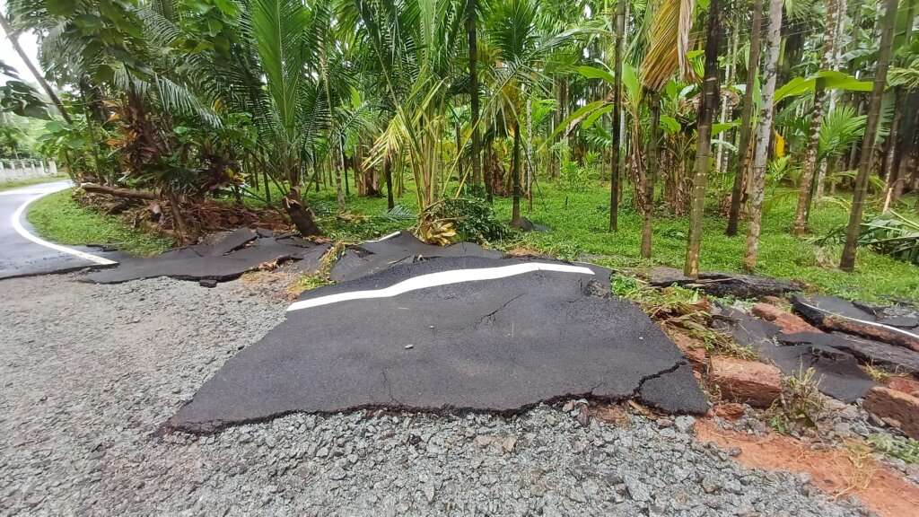ಪೆರುವಾಜೆ ಗ್ರಾಮದ ಕುಂಡ್ಕದಲ್ಲಿ ಬೀಕರ ಮಳೆಗೆ ಡಾಮರು ರಸ್ತೆಯೇ ಕೊಚ್ಚಿ ಹೋದ ಘಟನೆ ನಡೆದಿದೆ. ಕುಂಡಡ್ಕ ಚೆನ್ನಾವರ ಸೇತುವೆ ಬಳಿ ಹೊಸದಾಗಿ ಡಾಮರೀಕರಣವಾದ ರಸ್ತೆ ಹೊಳೆಯ ಮಳೆ ನೀರಿ ಉಕ್ಕಿ ಹರಿದ ಪರಿಣಾಮ ಡಾಮರು ರಸ್ತೆ ಕೊಚ್ಚಿ ಹೋಗಿದ್ದು ಅಪಾರ ನಷ್ಟವಾಗಿರುವುದಾಗಿ ತಿಳಿದು ಬಂದಿದೆ.