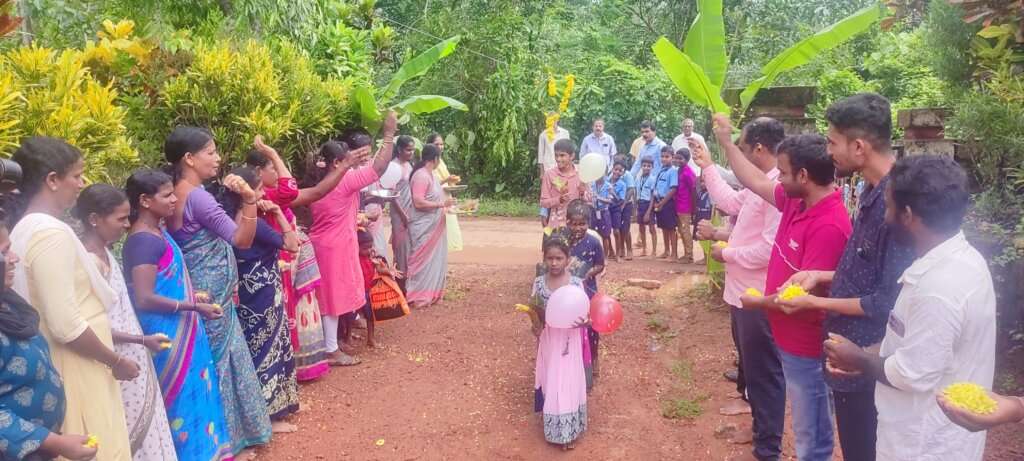 ಶಾಲಾ ಪ್ರಾರಂಭೋತ್ಸವದ ಹಿನ್ನೆಲೆಯಲ್ಲಿ ಬ್ಯಾಂಡ್ ವಾದನದ ಜತೆಗೆ ಪುಷ್ಪವೃಷ್ಠಿಯೊಂದಿಗೆ ವಿದ್ಯಾರ್ಥಿಗಳನ್ನು ಮೆರವಣಿಗೆ ಮೂಲಕ ವಿಶಿಷ್ಟ ರೀತಿಯಲ್ಲಿ ಬರಮಾಡಿಕೊಳ್ಳಲಾಯಿತು. ಅದಾದ ಬಳಿಕ ಹೂಗುಚ್ಛ ನೀಡಿ ಸಿಹಿ ಹಂಚಿ ಸ್ವಾಗತ ಕೋರಲಾಯಿತು.