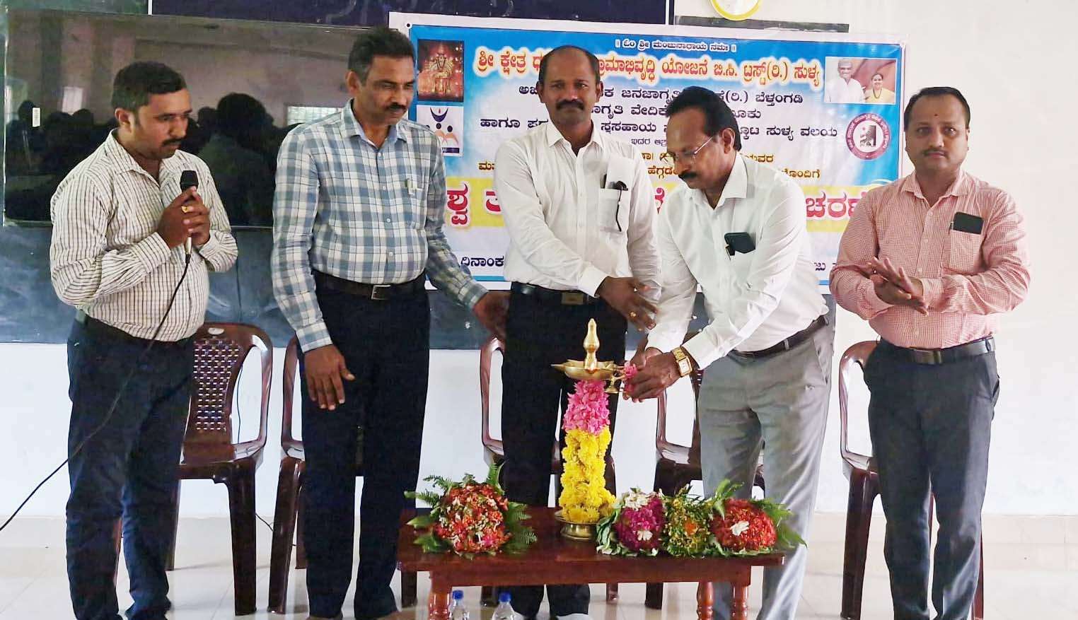 ಸುಳ್ಯ ತಾಲೂಕು ಜನಜಾಗೃತಿ ವೇದಿಕೆ ಅಧ್ಯಕ್ಷರಾದ ಲೋಕನಾಥ್ ಅಮೆಚೂರ್ ರವರು ದೀಪ ಪ್ರಜ್ವಲಿಸಿ “ದೀಪ ಅಂತರಂಗದ ಕತ್ತಲನ್ನು ಹೋಗಲಾಡಿಸಿ ಜ್ಞಾನದ ಜ್ಯೋತಿ ಬೆಳಗುವಂತಾಗಲಿ” ಎಂದು ತಿಳಿಸಿದರು .