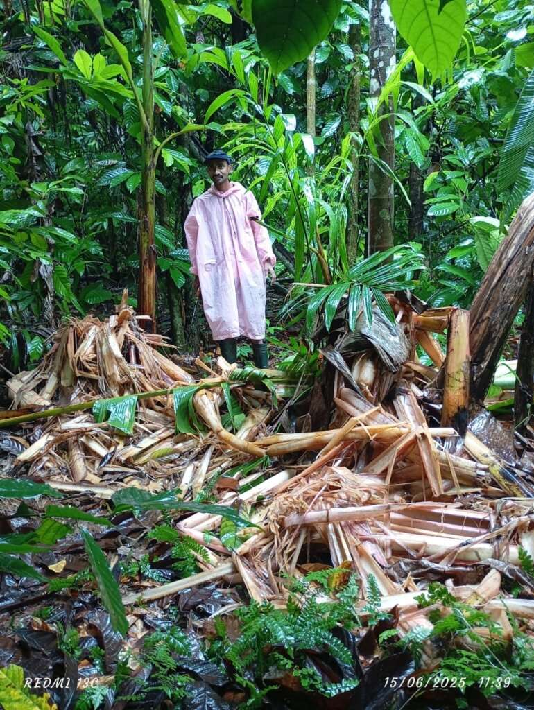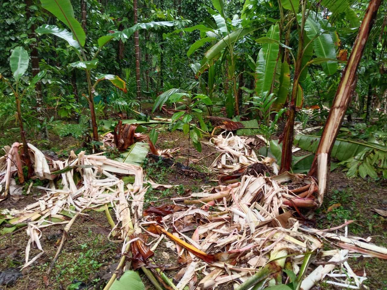 ಅರಂತೋಡು ಕಿರ್ಲಾಯ ಅಶೋಕ ಮೇಲಡ್ತಲೆ ಇವರ ತೋಟಕ್ಕೆ ಜೂ.14 ರ ರಾತ್ರಿ ಆನೆಗಳ ಗುಂಪು ದಾಳಿ ನಡೆಸಿ ಅಪಾರ ಬಾಳೆ ಕೃಷಿ ಹಾನಿ ಮಾಡಿದೆ.