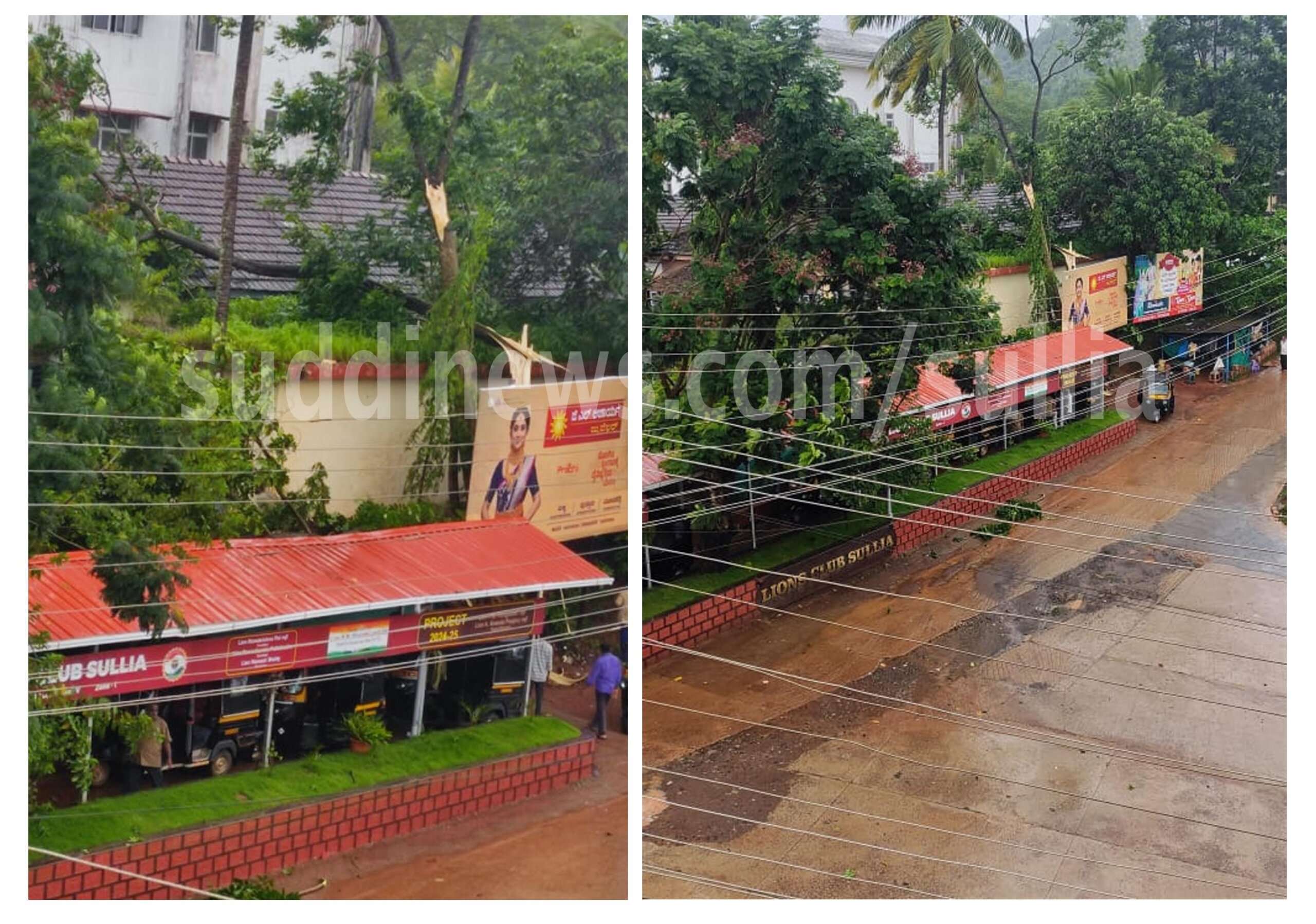ಕೆ.ವಿ.ಜಿ ಕ್ಯಾಂಪಸ್ ಬಳಿಯ ಕುರುಂಜಿಭಾಗ್ ರಿಕ್ಷಾ ನಿಲ್ದಾಣದ ಪಕ್ಕದಲ್ಲಿದ್ದ ಬೃಹತ್ ಗಾತ್ರದ ಮರದ ಕೊಂಬೆ ಮುರಿದು ಬಿದ್ದು ತಾಲೂಕು ಕಚೇರಿಯ ಮೇಲ್ಚಾವಣಿಯ ಹಂಚುಗಳು ಪುಡಿಯಾಗಿದೆ. ರಿಕ್ಷಾ ನಿಲ್ದಾಣಕ್ಕೆ ಅಲ್ಪ ಪ್ರಮಾಣದ ಹಾನಿ ಸಂಭವಿಸಿದೆ. ಅಟೋ ನಿಲ್ದಾಣದಲ್ಲಿ ರಿಕ್ಷಾ ನಿಲ್ಲಿಸಲಾಗಿದ್ದು ಘಟನೆಯಿಂದ ಯಾವುದೇ ರೀತಿಯ ಅಪಾಯ ಸಂಭವಿಸಿಲ್ಲ ಎಂದು ತಿಳಿದು ಬಂದಿದೆ.