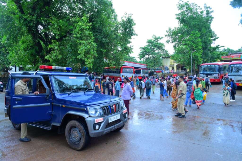 ಇತರ ಬಸ್ ಗಳಿಗೆ ಬ್ಯಾರಿಕೇಡ್ ಅಡ್ಡ ಇಟ್ಟು ದಿಗ್ಬಂಧನ ವಿಧಿಸಿದ ಯಾತ್ರಿಕರು