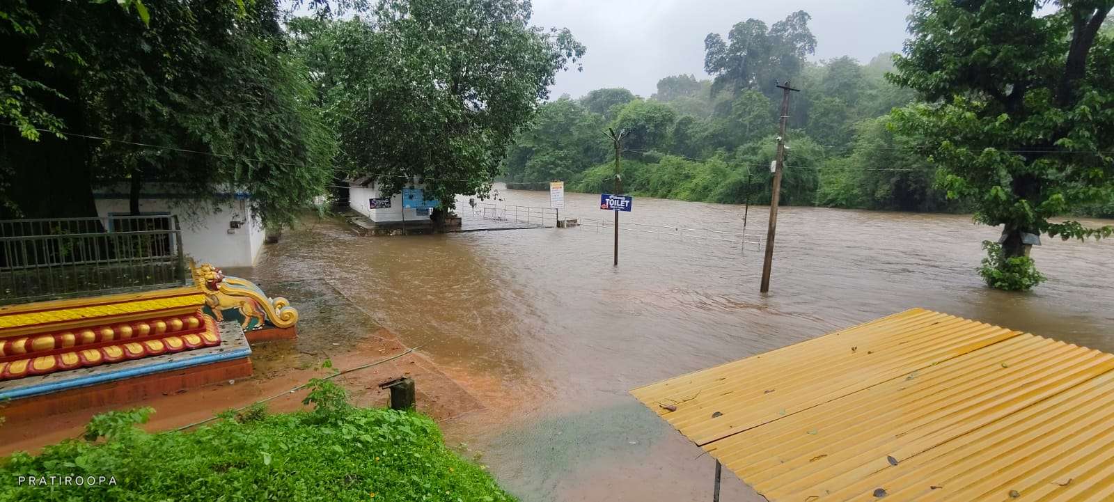 ಸ್ನಾನಘಟ್ಟ ಜಲಾವೃತವಾಗಿದ್ದು ಭಕ್ತಾದಿಗಳಿಗೆ ನದಿ ಗಿಳಿಯದಂತೆ ಸೂಚನೆ ನೀಡಲಾಗಿದೆ.