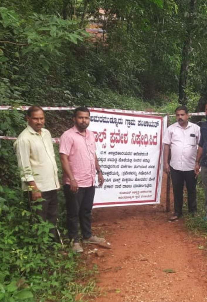 ದ.ಕ ಜಿಲ್ಲಾಧಿಕಾರಿ ಆದೇಶದಂತೆ ಅಮರಮುಡ್ನೂರು ಪಂಚಾಯತ್ ವತಿಯಿಂದ ನಿಷೇಧ ಹೇರಿದ ಬರವಣಿಗೆಯ ಬ್ಯಾನರ್ ಸ್ಥಳದಲ್ಲಿ ಅಳವಡಿಸಲಾಗಿದೆ. ಸಾರ್ವಜನಿಕರು