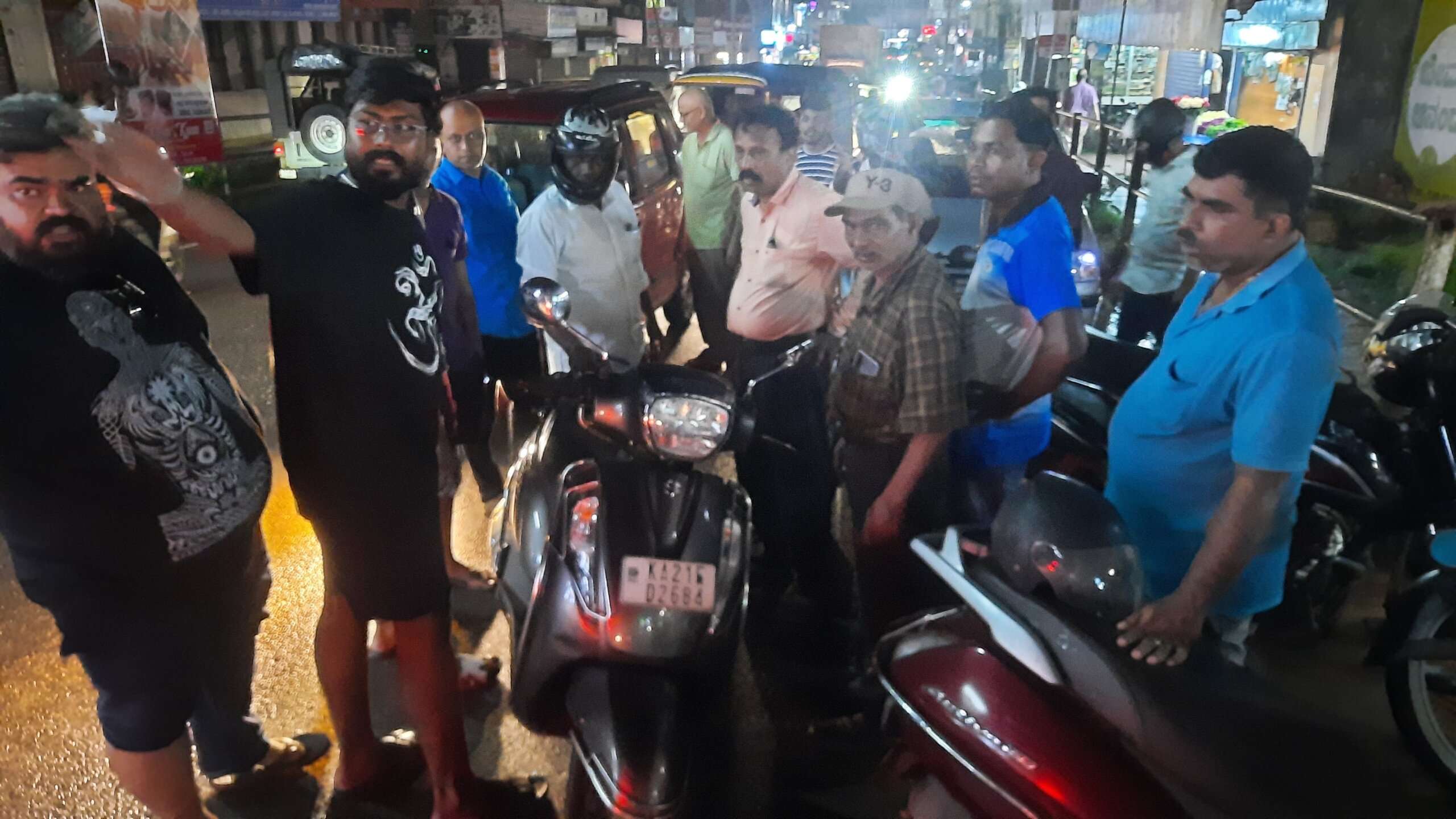 ಸುಳ್ಯದ ಶ್ರೀ ರಾಂಪೇಟೆಯ ಬಾಳೆಮಕ್ಕಿಯಲ್ಲಿ ರಸ್ತೆ ಮಧ್ಯೆ ಸಡನ್ ಬ್ರೇಕ್ ಹಾಕಿ ನಿಲ್ಲಿಸಿದ ಕಾರಿಗೆ ಹಿಂದುಗಡೆಯಿಂದ ಬರುತ್ತಿದ್ದ ಸ್ಕೂಟಿ ಡಿಕ್ಕಿ ಹೊಡೆಯಿತು. ಇದರ ಹಿಂದುಗಡೆಯಿಂದ ಬಂದ ಬೈಕ್ ಸ್ಕೂಟಿಗೆ ತಾಗಿ ದ್ವಿಚಕ್ರ ವಾಹನಗಳ ಸವಾರರಿಬ್ಬರು ರಸ್ತೆಗೆ ಬಿದ್ದರು. ಮಹಾರಾಷ್ಟ್ರ ನೋಂದಾವಣೆಯ ಕಾರು ರಸ್ತೆ ಮಧ್ಯೆ ಸಡನ್ನಾಗಿ ಬ್ರೇಕ್ ಹಾಕಿದ್ದರಿಂದ ಸ್ಕೂಟಿ ಸವಾರರು ನಿಯಂತ್ರಣ ತಪ್ಪಿ ಕಾರಿನ ಹಿಂಬದಿಗೆ ತಾಗಿ ರಸ್ತೆ ಮೇಲೆ ಬಿದ್ದರು. ಪರಿಣಾಮವಾಗಿ