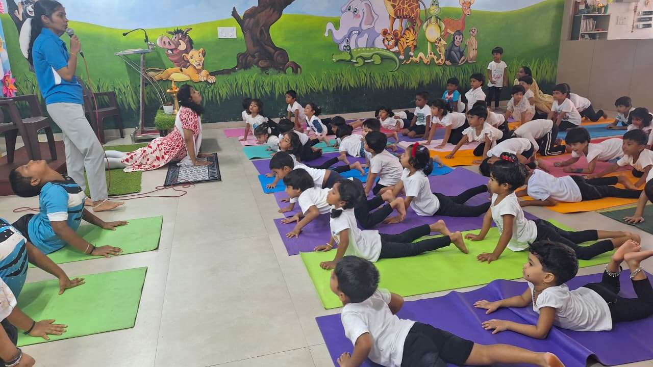 ಅಂಜಲಿ ಮೌಂಟೇಸರಿ ಸ್ಕೂಲ್ ನಲ್ಲಿ ಅಂತರಾಷ್ಟ್ರೀಯ ಯೋಗ ದಿನಾಚರಣೆ ಆಚರಿಸಲಾಯಿತು.