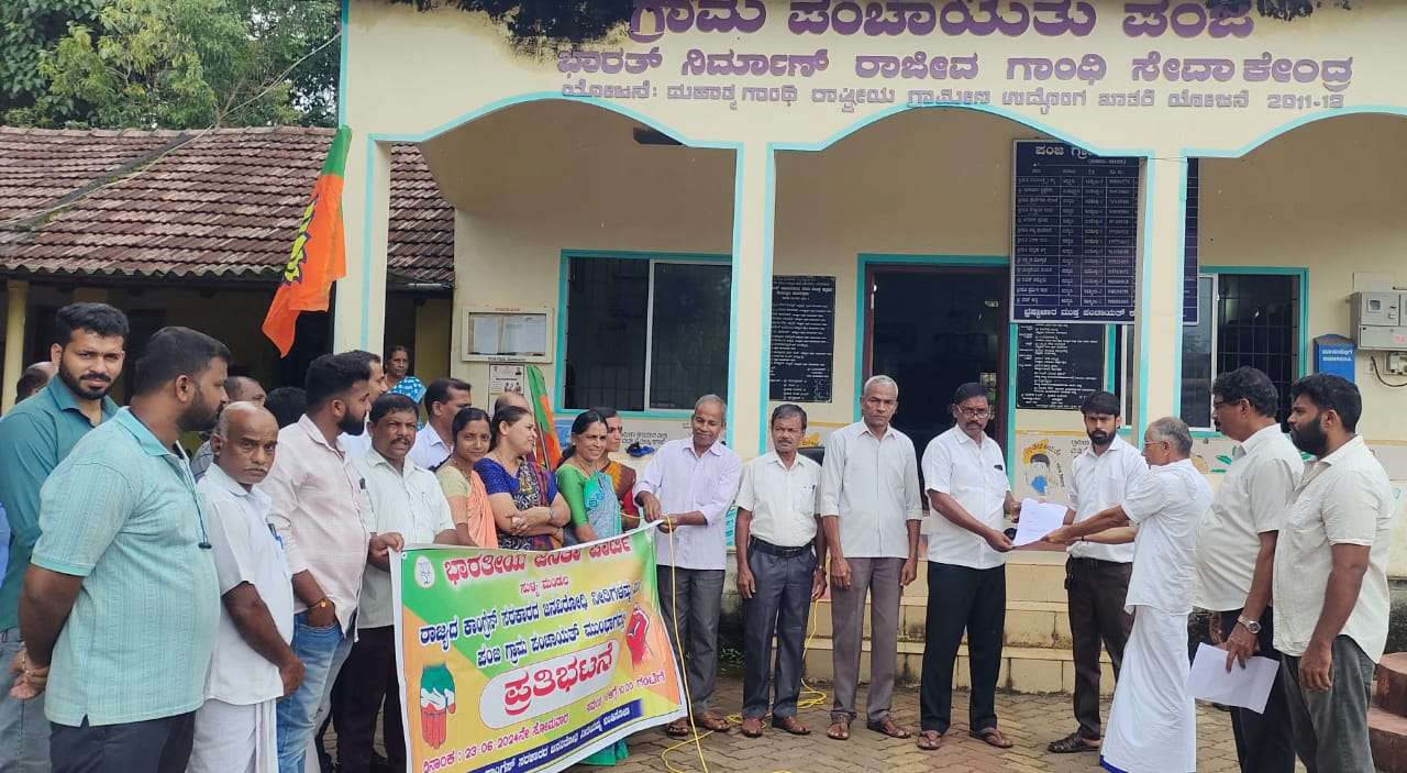 ಕಾಂಗ್ರೆಸ್ ಆಡಳಿತ ರಾಜ್ಯ ಸರಕಾರದ ಜನವಿರೋಧಿ ನೀತಿ ಖಂಡಿಸಿ ಭಾರತೀಯ ಜನತಾ ಪಾರ್ಟಿ ವತಿಯಿಂದ ಪಂಜ ಗ್ರಾಮ ಪಂಚಾಯತ್ ಮುಂಭಾಗದಲ್ಲಿ ಪ್ರತಿಭಟನೆ ಜೂ.23 ರಂದು ನಡೆಯಿತು. ಮನ್ ಕೀ ಬಾತ್ ಪ್ರಮುಖ್ ನಾರಾಯಣ ಕೃಷ್ಣನಗರ ಮತ್ತು ಐವತ್ತೊಕ್ಲು ಶಕ್ತಿ ಕೇಂದ್ರದ ಪ್ರಮುಖ್ ಲೋಕೇಶ್ ಬರೆಮೇಲು ರವರು ಕಾಂಗ್ರೆಸ್ ಆಡಳಿತ ಸರಕಾರದಿಂದ ಜನ ವಿರೋಧಿ ನೀತಿ ಕುರಿತು ವಿವರಿಸಿದರು. ಬಳಿಕ ಗ್ರಾಮ ಪಂಚಾಯತ್ ಅಭಿವೃದ್ಧಿ ಅಧಿಕಾರಿ ಜಯಂತ್ ಯು ಬಿ ರವರಿಗೆ ಮನವಿ ಸಲ್ಲಿಸಿದರು.
