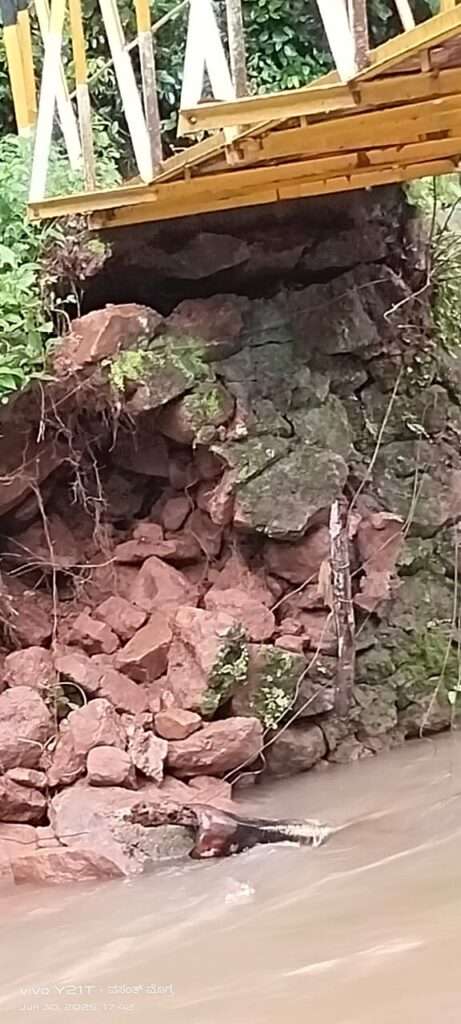 ಗುತ್ತಿಗಾರು ಗ್ರಾಮದ ಕಮಿಲ ಬಳಿಯ ಮೊಗ್ರ ಕಾಲು ಸೇತುವೆಯ ಒಂದು ಅಂಚಿನ ಕಲ್ಲುಗಳು ನೀರಿನ ರಭಸಕ್ಕೆ ಕುಸಿದಿದ್ದು ಸೇತುವೆ ಸೇತುವೆ ಶಿಥಿಲವಾದಂತಾಗಿದೆ.