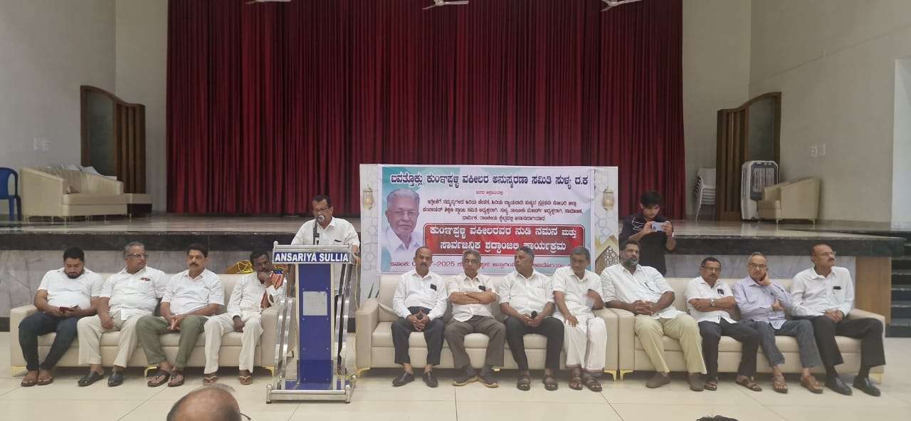 ಇತ್ತೀಚೆಗೆ ನಿಧನ ಹೊಂದಿದ ಸುಳ್ಯ ತಾಲೂಕು ಬೋರ್ಡ್ ಮಾಜಿ ಅಧ್ಯಕ್ಷ, ದ. ಕ. ಜಿಲ್ಲಾ ಪರಿಷತ್ ಶಿಕ್ಷಣ ಸ್ಥಾಯಿ ಸಮಿತಿ ಮಾಜಿ ಅಧ್ಯಕ್ಷ, ಸುಳ್ಯದ ಪ್ರಥಮ ನೋಟರಿ, ಮುಸ್ಲಿಂ ಸಮುದಾಯದ ಸುಳ್ಯದ ಪ್ರಥಮ ನ್ಯಾಯವಾದಿ ಸಾಮಾಜಿಕ, ಧಾರ್ಮಿಕ, ಶೈಕ್ಷಣಿಕ ರಂಗದಲ್ಲಿ ಅನನ್ಯ ಸೇವೆ ಸಲ್ಲಿಸಿ ಜನಾನು ರಾಗಿಯಾದ ಪ್ರತಿಷ್ಠಿತ ಐವತ್ತೊಕ್ಲು ಮನೆತನದ ಮೇರು ವ್ಯಕ್ತಿ ಕುಂಞಪ್ಪಳ್ಳಿ ವಕೀಲರಿಗೆ ಸಾರ್ವಜನಿಕ ನುಡಿ ನಮನ ಮತ್ತು ಶ್ರದ್ದಾoಜಲಿ ಕಾರ್ಯಕ್ರಮ ಸುಳ್ಯ ಅನ್ಸಾರಿಯ ಗಲ್ಫ್ ಆಡಿಟೋರಿಯಂ ನಲ್ಲಿ ಜರಗಿತು.