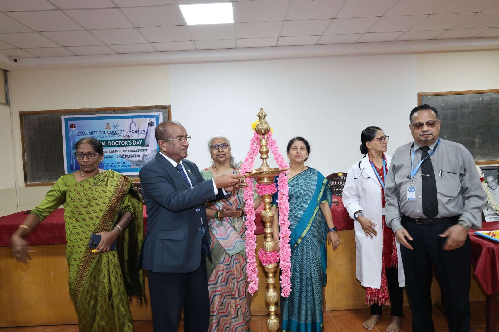 ಕೆ.ವಿ.ಜಿ ಮೆಡಿಕಲ್ ಕಾಲೇಜಿನಲ್ಲಿ ಡಾಕ್ಟರ್ ಡೇ ಕಾರ್ಯಕ್ರಮವನ್ನು ಜು. 1ರಂದು ಆಚರಿಸಲಾಯಿತು. ಕಾರ್ಯಕ್ರಮದ ಅಧ್ಯಕ್ಷತೆಯನ್ನು ಎಒಎಲ್ಇ ಅಧ್ಯಕ್ಷ ಡಾ. ಕೆ.ವಿ ಚಿದಾನಂದ ವಹಿಸಿದ್ದರು. ವೇದಿಕೆಯಲ್ಲಿ ಎಒಎಲ್ಇ ಉಪಾಧ್ಯಕ್ಷೆ ಶ್ರೀಮತಿ ಶೋಭಾ ಚಿದಾನಂದ, ಕಾಲೇಜಿನ ಡೀನ್ ಡಾ. ನೀಲಾಂಬಿಕೈ ನಟರಾಜನ್ ಉಪಸ್ಥಿತರಿದ್ದರು.
