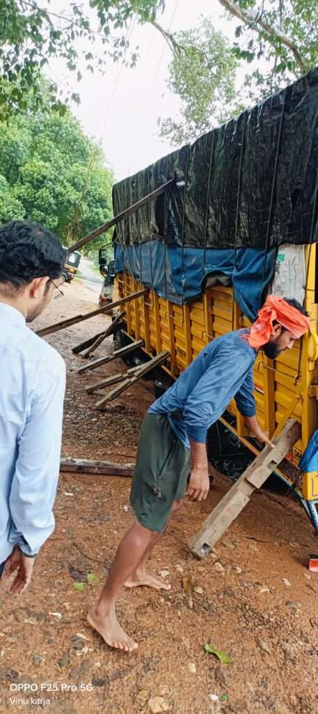 ಸಂಘದ ರೇಷನ್ ವಿಭಾಗಕ್ಕೆ ಆಹಾರ ಸಾಮಾಗ್ರಿಗಳು, ರಸಗೊಬ್ಬರ, ದಿನಸಿ ಸಾಮಾಗ್ರಿಗಳನ್ನು ಅನ್ ಲೋಡ್ ಮಾಡಲೆಂದು ರಸ್ತೆ ಪಕ್ಕಕ್ಕೆ ವಾಹನ ಬರುವಾಗ ಈ ಸಮಸ್ಯೆ ಎದುರಾಗಿ ಗೂಡ್ಸ್ ಲಾರಿ ಅಲ್ಲೇ ಬಾಕಿಯಾಯಿತು.