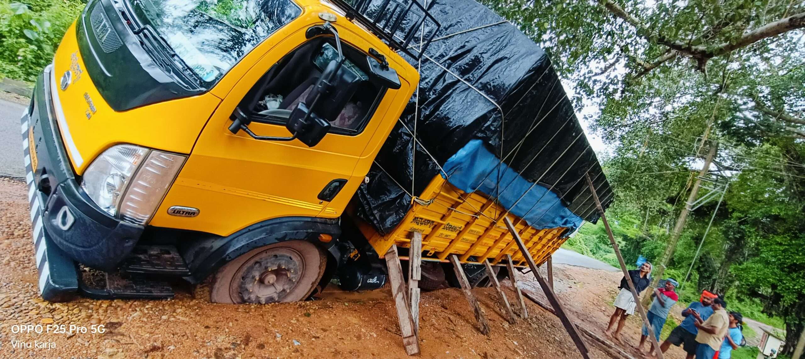 ಬಳ್ಪದಲ್ಲಿ ಹೋದ ಗೂಡ್ಸ್ ಲಾರಿ ; ಸೊಸೈಟಿಗೆ ರೇಷನ್ ಸಾಮಾಗ್ರಿ ತರುವ ಲಾರಿ ಬಾಕಿ