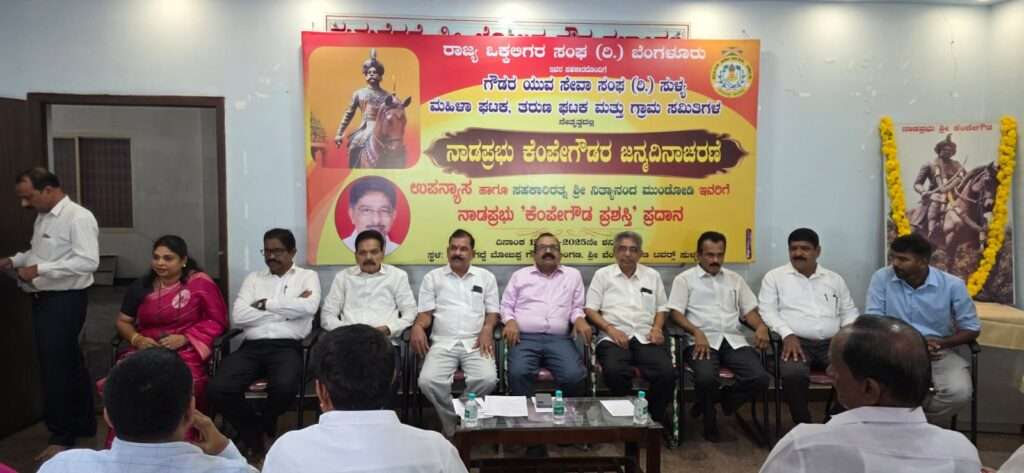 ರಾಜ್ಯ ಒಕ್ಕಲಿಗರ ಸಂಘ ಬೆಂಗಳೂರು ಇವರ ಸಹಕಾರ ದೊಂದಿಗೆ ಗೌಡರ ಯುವ ಸೇವಾ ಸಂಘ ಸುಳ್ಯ ತಾಲೂಕು, ಮಹಿಳಾ ಘಟಕ, ತರುಣ ಘಟಕ ಮತ್ತು ಗ್ರಾಮ ಸಮಿತಿಗಳ ನೇತೃತ್ವದಲ್ಲಿ ನಾಡಪ್ರಭು ಕೆಂಪೇಗೌಡ ಜನ್ಮದಿನಾಚರಣೆ, ಉಪನ್ಯಾಸ ಹಾಗೂ ಸಹಕಾರಿ ರತ್ನ ನಿತ್ಯಾನಂದ ಮುಂಡೋಡಿಯವರಿಗೆ ನಾಡಪ್ರಭು ಕೆಂಪೇಗೌಡ ಪ್ರಶಸ್ತಿ ಪ್ರದಾನ ಸಮಾರಂಭ ಜು. ೧೨ರಂಂದು ಸುಳ್ಯದ ಶ್ರೀ ವೆಂಕಟರಮಣ ಕ್ರೆಡಿಟ್ ಕೋಆಪರೇಟಿವ್ ಸೊಸೈಟಿಯ ಮದುವೆಗದ್ದೆ ಭೋಜಪ್ಪ ಗೌಡ ಸಭಾಂಗಣದಲ್ಲಿ ನಡೆಯಿತು.