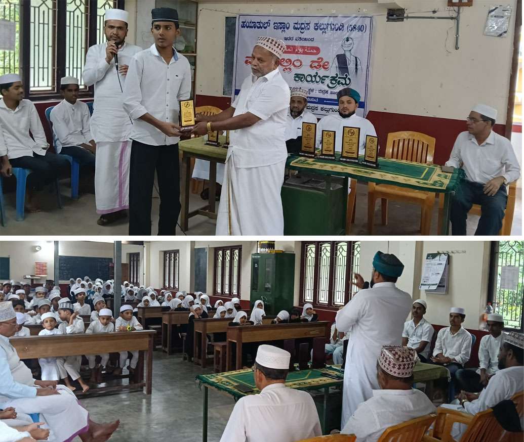 ಸಮಸ್ತ ಸ್ಥಾಪನ ದಿನಾಚರಣೆ ಹಾಗೂ ಮುಅಲ್ಲಿಮ್ ಡೇ ಪ್ರಯುಕ್ತ ವಿದ್ಯಾರ್ಥಿಗಳಿಗೆ ನಡೆಸಿದ್ದ ಕ್ವಿಜ್ ಮತ್ತು ಪ್ರಬಂಧ ಸ್ಪರ್ಧೆಯ ವಿಜೇತರಿಗೆ ಸ್ಮರಣಿಕೆ ನೀಡಿ ಪ್ರೋತ್ಸಾಹ ನೀಡಲಾಯಿತು. ತದ ನಂತರ ವಿದ್ಯಾರ್ಥಿಗಳು ತಮ್ಮ ನೆಚ್ಚಿನ ಉಸ್ತಾದರುಗಳಿಗೆ ಪಾರಿತೋಷಕ ನೀಡಿ ಗೌರವಿಸಿದರು.ಕಾರ್ಯಕ್ರಮದ ಕೊನೆಯಲ್ಲಿ ಸಿಹಿ ವಿತರಣೆ ಹಾಗೂ ದುಆ ನಡೆಸಲಾಯಿತು. ಸದರ್ ಉಸ್ತಾದ್ ಕಾರ್ಯಕ್ರಮ ನಿರೂಪಿಸಿದರು.
