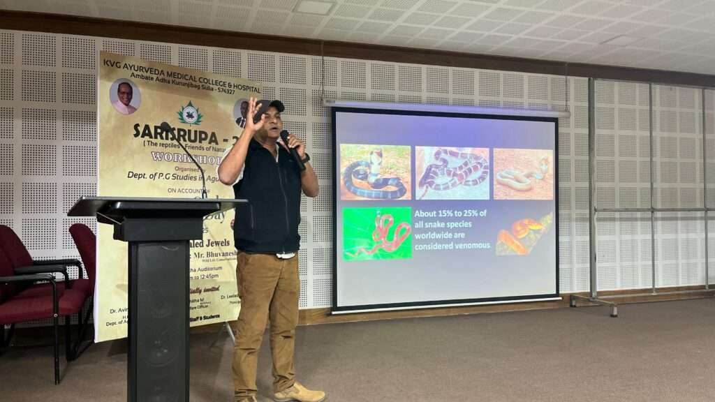 ವಿಶ್ವ ಹಾವುಗಳ ದಿನಾಚರಣೆಯ ಪ್ರಯುಕ್ತ ಪರಿಸರ ಹಾಗೂ ವಿವಿಧ ರೀತಿಯ ಉರಗಗಳ ಸಂರಕ್ಷಣೆಯ ಕುರಿತು ಮಾಹಿತಿ ಕಾರ್ಯಗಾರವನ್ನು ಕಾಲೇಜಿನ ಸುಶ್ರುತ ಸಭಾಂಗಣದಲ್ಲಿ ಜು. 16 ರಂದು ನಡೆಯಿತು.