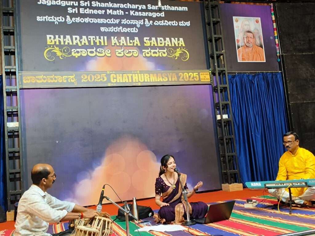 ಎಡನೀರು ಮಠದಲ್ಲಿ ನಡೆಯುತ್ತಿರುವ ಶ್ರೀ ಶ್ರೀ ಸಚ್ಚಿದಾನಂದ ಭಾರತೀ ಸ್ವಾಮೀಜಿಯವರ ಪಂಚಮ ಚಾತುರ್ಮಾಸ್ಯ ವ್ರತಾಚರಣೆಯ ಸಂದರ್ಭದಲ್ಲಿ ಜು.16ರಂದು ವಿಭಾಶ್ರೀ ಬೆಳ್ಳಾರೆಯವರಿಂದ ಭಕ್ತಿ ಸಂಗೀತ ಕಾರ್ಯಕ್ರಮ ನಡೆಯಿತು. ತಬಲಾದಲ್ಲಿ ಅಶೋಕ್ ಕಾಸರಗೋಡು, ಕೀ ಬೋರ್ಡ್ ನಲ್ಲಿ ಅಮ್ಮು ಮಾಸ್ತರ್ ಅಮ್ಮಂಗೋಡು ಸಹಕರಿಸಿದರು. ಬೆಳ್ಳಾರೆಯ ಶ್ರೀ ಲ್ಯಾಬೋರೇಟರಿಯ ಸುರೇಶ್ ಮತ್ತು ಶ್ರೀಮತಿ ಅನುಪಮ ದಂಪತಿಯ ಪುತ್ರಿಯಾಗಿರು ಕು. ವಿಭಾಶ್ರೀಯವರು ಪುತ್ತೂರಿನ ವಿವೇಕಾನಂದ ಎಂಜಿನಿಯರಿಂಗ್ ಕಾಲೇಜಿನಲ್ಲಿ ಎಂಸಿಎ 4 ನೇ ಸೆಮಿಸ್ಟರ್ ನಲ್ಲಿ ವ್ಯಾಸಂಗ ಮಾಡುತ್ತಿದ್ದು ,ಕಳೆದ 4 ವರ್ಷಗಳಿಂದ ಖ್ಯಾತ ಹಿನ್ನೆಲೆ ಗಾಯಕ ಅಜಯ್ ವಾರಿಯರ್ ಬೆಂಗಳೂರು ಅವರ ಬಳಿ ಸಂಗೀತ ತರಬೇತಿಯನ್ನು ಪಡೆಯುತ್ತಿದ್ದಾರೆ.