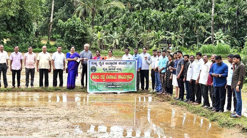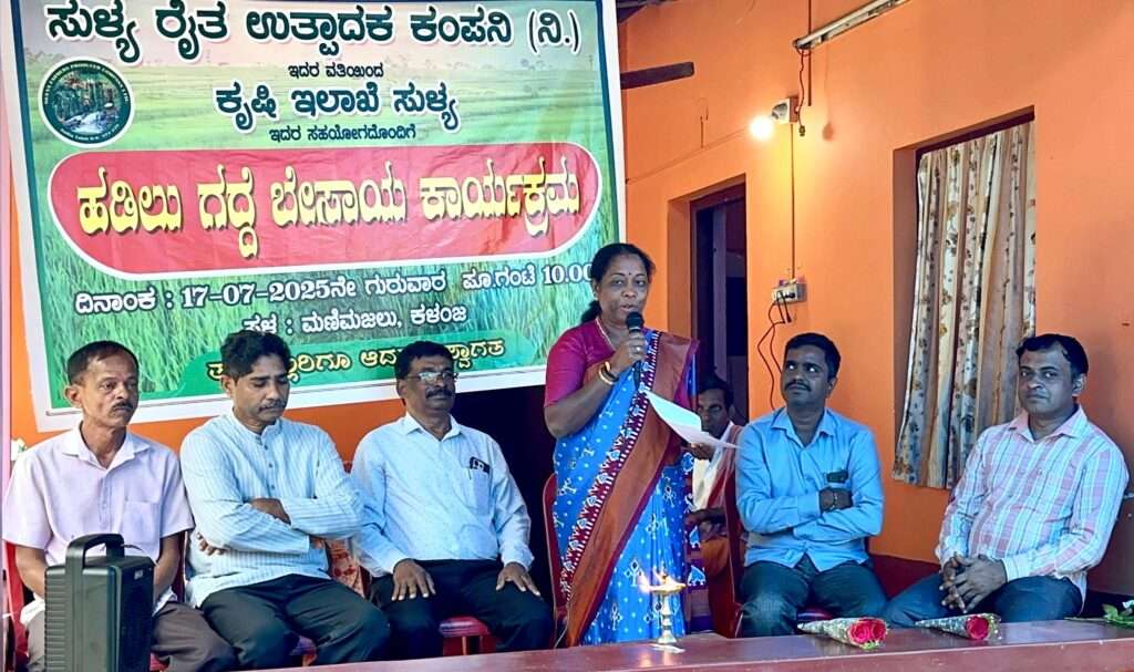 ಕೇಂದ್ರ ಮತ್ತು ರಾಜ್ಯ ಸರಕಾರದ ಯೋಜನೆಯಡಿ ರಚನೆಗೊಂಡ ರಾಜ್ಯ ರೈತ ಉತ್ಪಾದಕ ಕಂಪೆನಿ ಸುಳ್ಯ ಹಡಿಲು ಗದ್ದೆ ಬೇಸಾಯ ಕಾರ್ಯಕ್ರಮವನ್ನು ಕೃಷಿ ಇಲಾಖೆಯ ಸಹಕಾರದೊಂದಿಗೆ ಹಮ್ಮಿಕೊಂಡಿದ್ದು, ಜು.೧೭ರಂದು ಕಳಂಜ ಗ್ರಾಮದ ಮಣಿಮಜಲು ಎಂಬಲ್ಲಿ ಚಾಲನೆ ನೀಡಲಾಯಿತು.