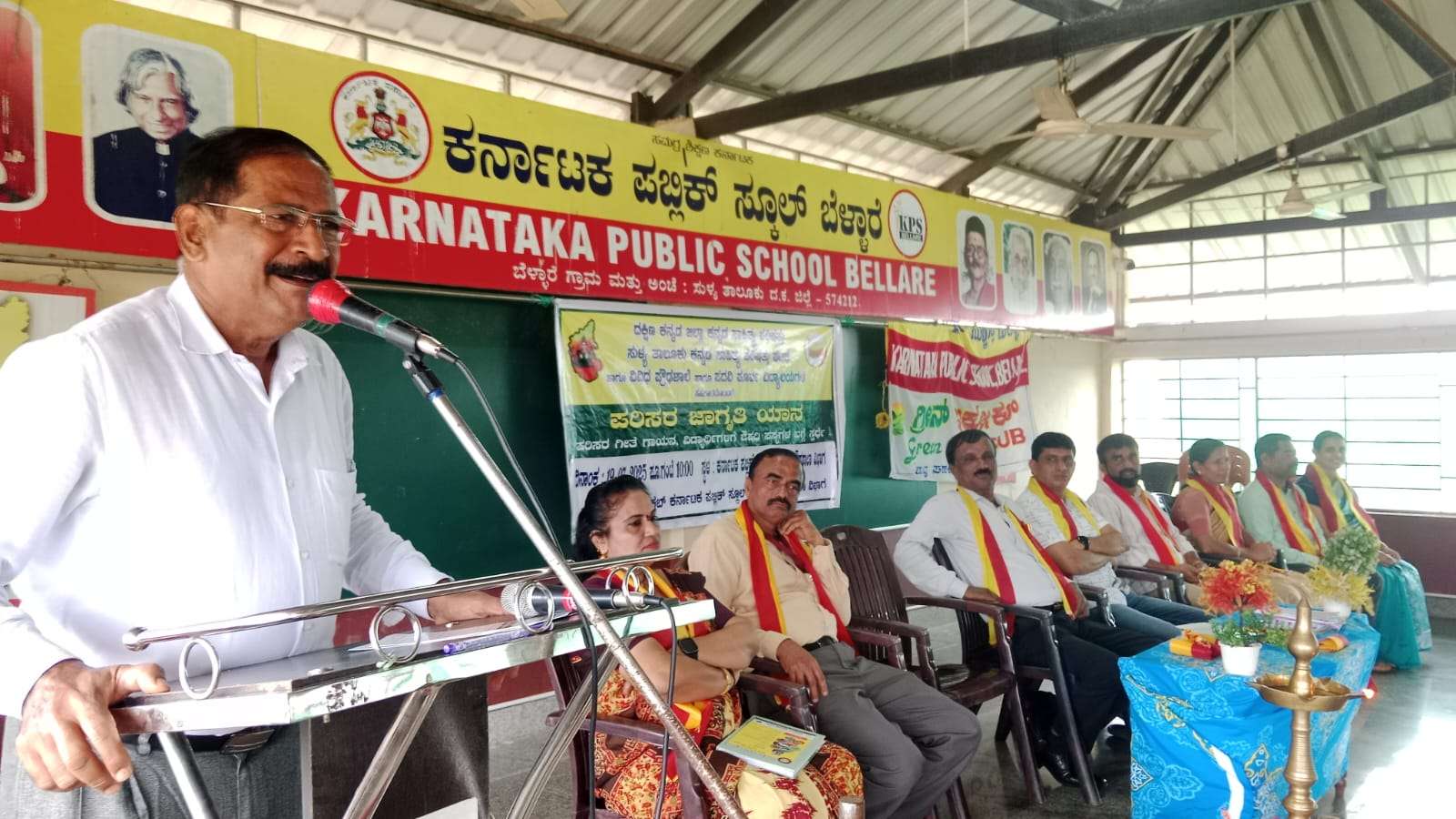 ಅವರು ಇಂದು ( ಜು.19)ಕನ್ನಡ ಸಾಹಿತ್ಯ ಪರಿಷತ್ತು ಸುಳ್ಯ ತಾಲೂಕು ಘಟಕ ಇದರ ವತಿಯಿಂದ ಬೆಳ್ಳಾರೆ ಕರ್ನಾಟಕ ಪಬ್ಲಿಕ್ ಸ್ಕೂಲ್ ನ ಪ್ರೌಢಶಾಲಾ ವಿಭಾಗ ಮತ್ತು ಇಕೋ ಕ್ಲಬ್ ನ ಸಹಯೋಗದಲ್ಲಿ ನಡೆದ ಪರಿಸರ ಜಾಗೃತಿಯಾನ – ಪರಿಸರ ಗೀತೆ ಗಾಯನ, ಔಷಧ ಸಸ್ಯಗಳ ಬಗ್ಗೆ ವಿದ್ಯಾರ್ಥಿಗಳಿಗೆ ಸ್ಪರ್ಧೆ ಕಾರ್ಯಕ್ರಮದಲ್ಲಿ ಸಂಪನ್ಮೂಲ ವ್ಯಕ್ತಿಯಾಗಿ ಮಾತನಾಡಿದರು.