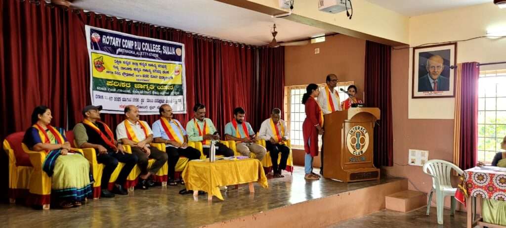 ದಕ್ಷಿಣ ಕನ್ನಡ ಜಿಲ್ಲಾ ಕನ್ನಡ ಸಾಹಿತ್ಯ ಪರಿಷತ್ತು ಸುಳ್ಯ ತಾಲೂಕು ಘಟಕ ಹಾಗೂ ರೋಟರಿ ಸಂಯುಕ್ತ ಪದವಿ ಪೂರ್ವ ಕಾಲೇಜು ಸುಳ್ಯ ಇದರ ಸಹಕಾರದೊಂದಿಗೆ ಪರಿಸರ ಜಾಗೃತಿಯಾನ ಮತ್ತು ಪರಿಸರ ಗೀತೆ ಗಾಯನ ಕಾರ್ಯಕ್ರಮವು ಜುಲೈ ೨೧ರಂದು ರೋಟರಿ ಸಂಯುಕ್ತ ಪದವಿ ಪೂರ್ವ ಕಾಲೇಜು ಸುಳ್ಯದಲ್ಲಿ ನಡೆಯಿತು. ಸುಳ್ಯ ತಾಲೂಕು ಘಟಕದ ಕನ್ನಡ ಸಾಹಿತ್ಯ ಪರಿಷತ್ತಿನ ಅಧ್ಯಕ್ಷ ಚಂದ್ರಶೇಖರ ಪೇರಾಲುರವರ ಅಧ್ಯಕ್ಷತೆಯಲ್ಲಿ ನಡೆದ ಈ ಕಾರ್ಯಕ್ರಮವನ್ನು ರೋಟರಿ ಕ್ಲಬ್ ಸುಳ್ಯದ ಅಧ್ಯಕ್ಷರಾಗಿರುವ ರೊ.ಡಾ.ರಾಮ ಮೋಹನ್ ಅವರು ದೀಪ ಬೆಳಗಿಸಿ ಉದ್ಘಾಟಿಸಿ ಅರಿವಿನ ದೀಪ ಬೆಳಗಲಿ ಎಂದು ಶುಭ ಹಾರೈಸಿದರು.