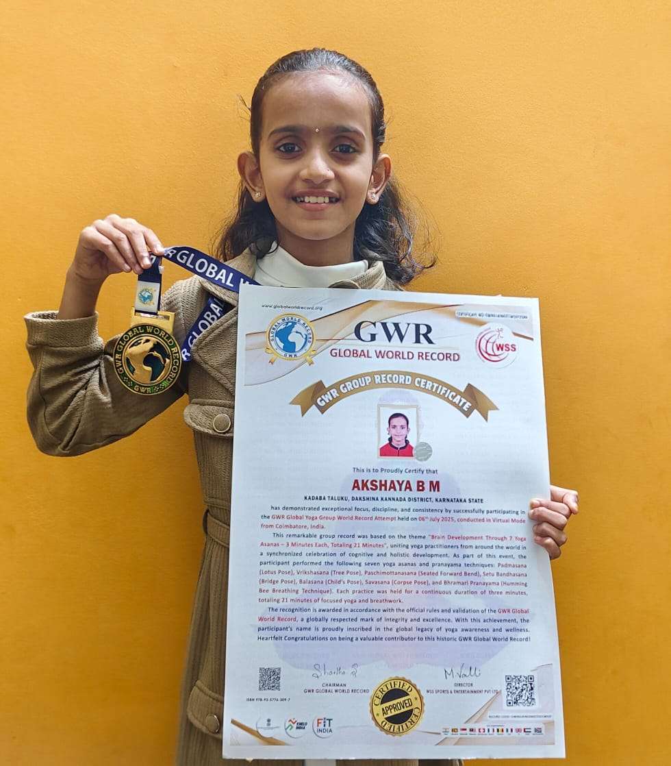 ಯೋಗಾಸನದಲ್ಲಿ 07 ಕ್ಲಿಷ್ಟಕರ ಆಸನಗಳನ್ನು, ಒಂದೊಂದು ಆಸನವನ್ನು 03 ನಿಮಿಷ ಒಂದೇ ಸ್ಥಿತಿಯಲ್ಲಿ 21 ನಿಮಿಷ ನಿರಂತರ ಆಸನಗಳನ್ನು ಮಾಡುವ ಮೂಲಕ ಗ್ಲೋಬಲ್ ವರ್ಲ್ಡ್ ರೆಕಾರ್ಡ್ ನಲ್ಲಿ ಏನೇಕಲ್ಲು ಗ್ರಾಮದ ಅಕ್ಷಯ ಬಾಬ್ಲುಬೆಟ್ಟು ತನ್ನ ಹೆಸರನ್ನು ದಾಖಲಿಸಿಕೊಂಡಿದ್ದಾರೆ. ಇವರು ಏನೇಕಲ್ಲು ನಿವಾಸಿ, ಸುದ್ದಿ ಏಜೆಂಟ್ ಮೋಹನ್ ಕುಮಾರ್ ಮತ್ತು ಶ್ರೀಮತಿ ದಿವ್ಯ ಕುಮಾರಿ ದಂಪತಿಯ ಪುತ್ರಿ. ಏನೆಕಲ್ಲು ಸರಕಾರಿ ಹಿರಿಯ ಪ್ರಾಥಮಿಕ ಶಾಲೆಯ 5ನೇ ತರಗತಿಯಲ್ಲಿ ವ್ಯಾಸಂಗ ಮಾಡುತ್ತಿದ್ದಾಳೆ.