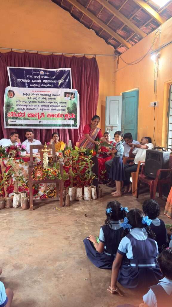 ಸ. ಹಿ.ಪ್ರಾ.ಶಾಲೆ ಬಂಗ್ಲೆಗುಡ್ಡೆ ಕೊಲ್ಲಮೊಗ್ರು ಇಲ್ಲಿನ ವಿದ್ಯಾರ್ಥಿಗಳಿಗೆ ಶ್ರೀ ಕ್ಷೇತ್ರ ಧರ್ಮಸ್ಥಳ ಗ್ರಾಮಾಭಿವೃದ್ಧಿ ಯೋಜನೆ ಕೊಲ್ಲಮೊಗ್ರು, ಸುಳ್ಯ ವತಿಯಿಂದ ಪರಿಸರ ಜಾಗೃತಿಯ ಬಗ್ಗೆ ಕಾರ್ಯಕ್ರಮವನ್ನು ಜು.21 ರಂದು ಹಮ್ಮಿಕೊಳ್ಳಲಾಯಿತು.ಇದರಲ್ಲಿ ತರಗತಿವಾರು ವಿದ್ಯಾರ್ಥಿಗಳಿಗೆ ಸ್ಪರ್ಧೆಗಳನ್ನು ಏರ್ಪಡಿಸಿ, ಬಹುಮಾನಗಳನ್ನು ವಿತರಿಸಿದರು, ಕಾರ್ಯಕ್ರಮದಲ್ಲಿ ಹಣ್ಣಿನ ಗಿಡಗಳನ್ನು ಶಾಲಾ ಮಂತ್ರಿಮಂಡಲದ ನಾಯಕರಿಗೆ ವಿತರಿಸಲಾಯಿತು.