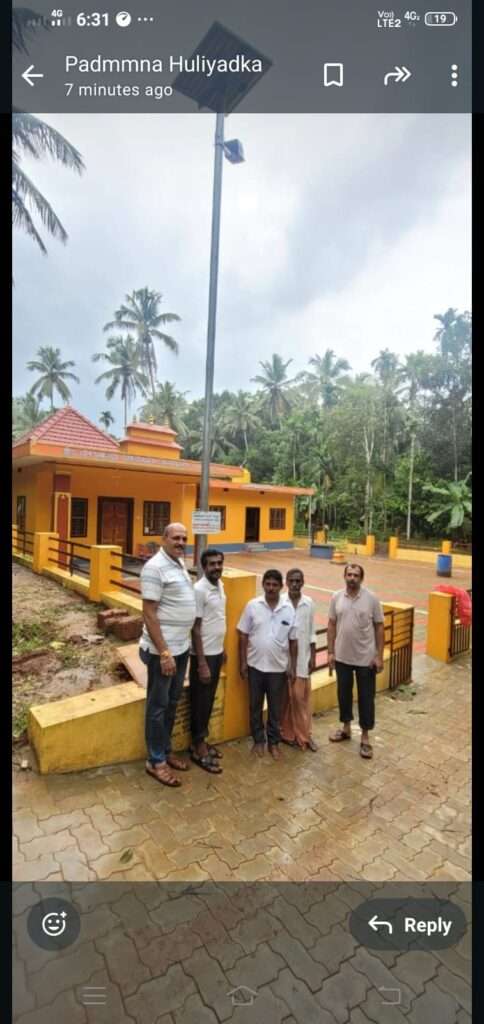 ಇದೀಗ ದೇವಸ್ಥಾನದ ವಠಾರದಲ್ಲಿ ಸೋಲಾರ್ ದೀಪವನ್ನು ಅಳವಡಿಸಲಾಗಿದೆ.