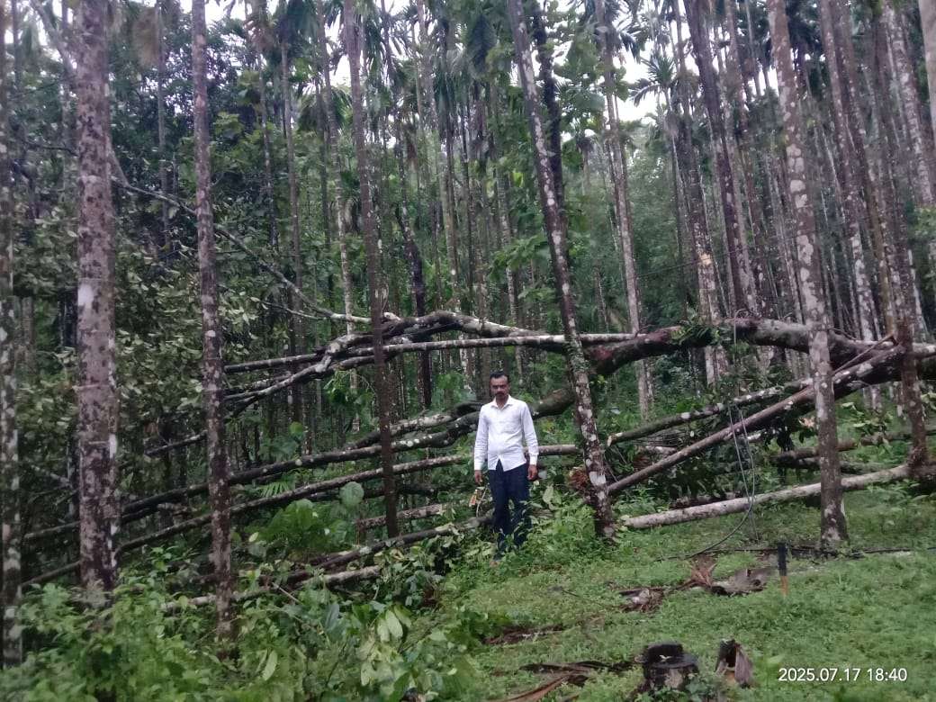 ಸೂಕ್ತ ಪರಿಹಾರಕ್ಕಾಗಿ ಮನವಿ ಕಳೆದ ಹಲವಾರು ವರ್ಷಗಳಿಂದ ಈ ಭಾಗದ ರೈತರು ಅಡಿಕೆ ತೆಂಗು ಬಾಳೆ ಕೊಕ್ಕೋ ಸೇರಿದಂತೆ ಇನ್ನಿತರ ಕೃಷಿಗಳನ್ನು ಅವಲಂಬಿಸಿಕೊಂಡಿದ್ದು ಇದೀಗ ಇತ್ತೀಚಿನ ದಿನಗಳಲ್ಲಿ ಕಾಡಾನೆ ಹಾವಳಿ ಸೇರಿದಂತೆ ಇದೀಗ ಪ್ರಕೃತಿಕ ವಿಕೋಪದಿಂದ ನಷ್ಟ ಉಂಟಾದ ಅಡಿಕೆ ಹಾಗೂ ಇನ್ನಿತರ ಕೃಷಿಗಳಿಗೆ ಸಂಬಂಧಪಟ್ಟ ಸರಕಾರದ ಕೃಷಿ ಹಾಗೂ ತೋಟಗಾರಿಕೆ ಇಲಾಖೆ ಕಂದಾಯ ಇಲಾಖೆಯವರು ರೈತರ ತೋಟಗಳಿಗೆ ಭೇಟಿ ನೀಡಿ ಪರಿಶೀಲಿಸಿ ಸೂಕ್ತ ಪರಿಹಾರವನ್ನು ಕೊಡಬೇಕೆಂದು ಈ ಭಾಗದ ರೈತರು ಆಗ್ರಹಿಸುತ್ತಿದ್ದಾರೆ. ಚಿತ್ರ ವರದಿ : ಡಿ. ಹೆಚ್.