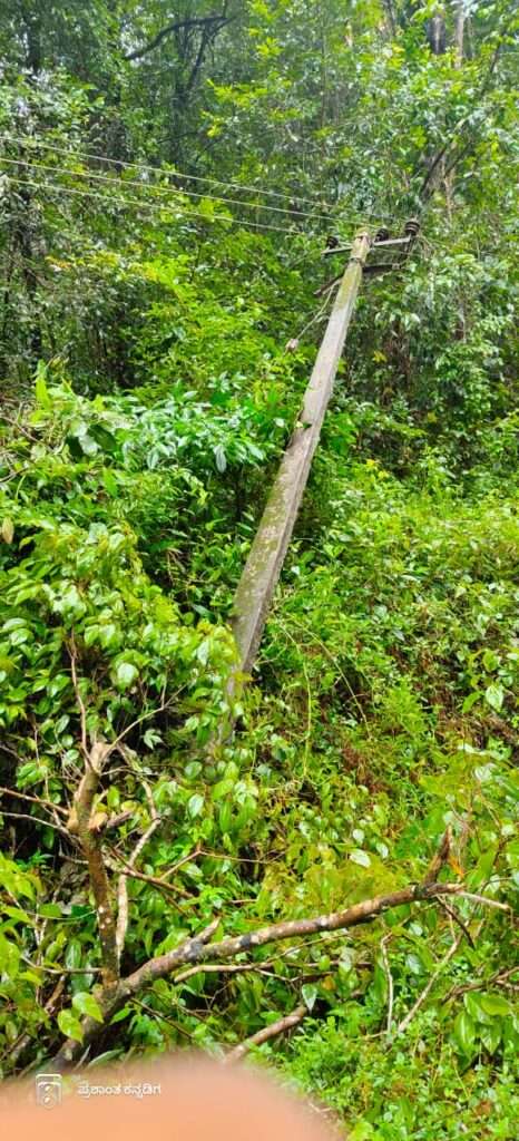 ಹರಿಹರ ಸುಬ್ರಹ್ಮಣ್ಯ ರಸ್ತೆಯಲ್ಲಿ ಅಲ್ಲಲ್ಲಿ ಮರ ಬಿದ್ದು ಸಾಲು ಸಾಲು ವಿದ್ಯುತ್ ಕಂಬಗಳು ಧರಶಾಹಿಯಾದ ಘಟನೆ ಜು.26 ರಾತ್ರಿ ನಡೆದಿದೆ.