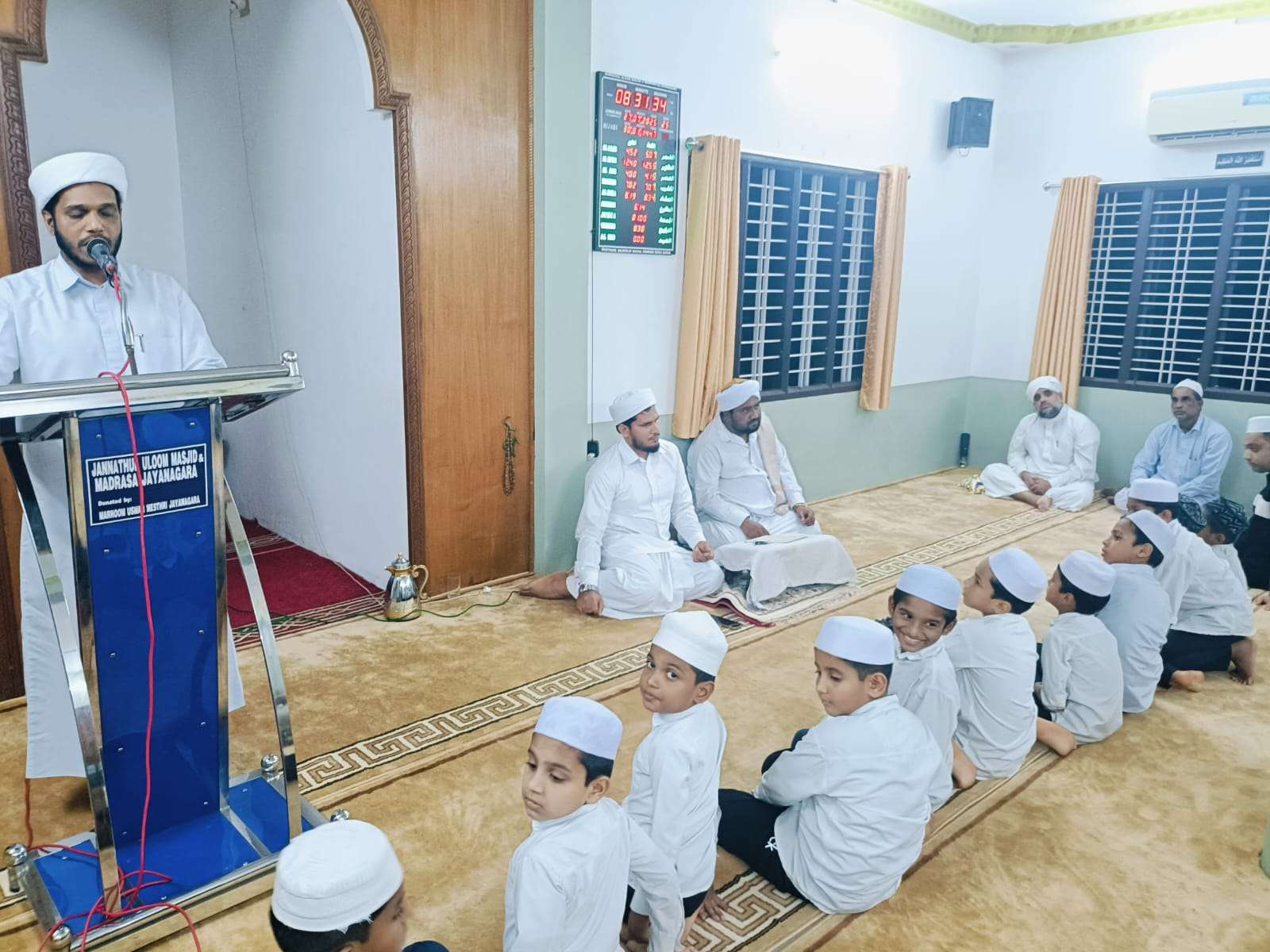 ಜಯನಗರ ಜನ್ನತುಲ್ ಉಲೂಮ್ ಮಸ್ಜಿದ್ ಮತ್ತು ಮದ್ರಸಾ ಸಮಿತಿ ವತಿಯಿಂದ ಆಚರಿಸಿಕೊಂಡು ಬರುವ ಮಾಸಿಕ ಅಜ್ಮೀರ್ ಮೌಲೂದ್ ಕಾರ್ಯಕ್ರಮ ಜುಲೈ 27ರಂದು ಜಯನಗರ ಮಸ್ಜಿದ್ ನಲ್ಲಿ ನಡೆಯಿತು.