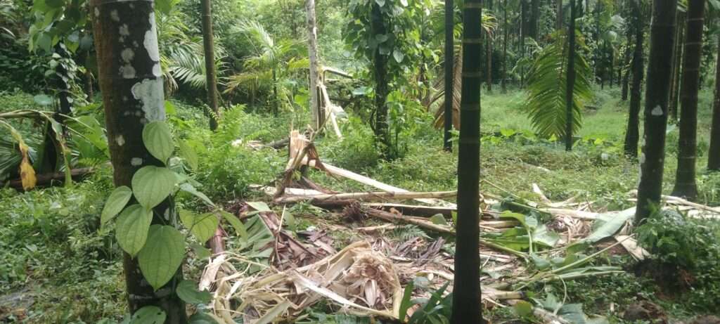 ದೇವಚಳ್ಳ ಗ್ರಾಮದ ಮಾಯಿಲಪ್ಪ ಮುಂಡೋಡಿಯವರ ತೋಟಕ್ಕೆ ಜು. 28 ರ ರಾತ್ರಿ ಆನೆ ದಾಳಿ ಮಾಡಿ 100 ಅಡಿಕೆ ಗಿಡ, 6 ತೆಂಗಿನಮರ ಹಾಗೂ ಬಾಳೆಗಿಡಗಳನ್ನು ನಾಶ ಮಾಡಿ ಅಪಾರ ನಷ್ಷ ಅನುಭವಿಸಿದ್ದಾರೆ.