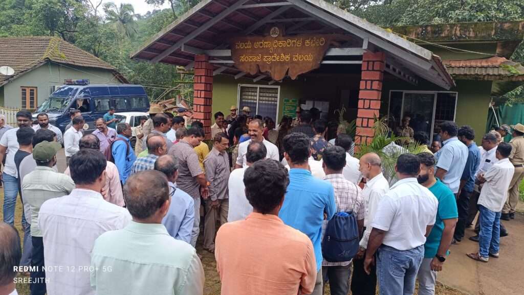 ಕಳೆದ ವಾರ ಚೆಂಬು ಗ್ರಾಮದ ದಬ್ಬಡ್ಕದಲ್ಲಿ ಕೃಷಿಕರೊಬ್ಬರನ್ನು ಕಾಡಾನೆ ಮೆಟ್ಟಿ ಕೊಂದಿದೆ. ಆದ್ದರಿಂದ ಆನೆಗಳನ್ನು ಹಿಡಿದು ಸಾಗಿಸಬೇಕೆಂದು ಒತ್ತಾಯಿಸಿ ಬಿಜೆಪಿ ವತಿಯಿಂದ ಸಂಪಾಜೆ ಅರಣ್ಯ ಇಲಾಖೆ ಎದುರು ಬಿಜೆಪಿ ಪ್ರತಿಭಟನೆ ನಡೆಸುತ್ತಿದೆ.