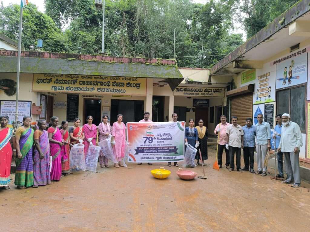 ಆ.14ರಂದು ಕನಕಮಜಲು ಗ್ರಾಮ ಪಂಚಾಯತ್ ವ್ಯಾಪ್ತಿಯಲ್ಲಿ 79 ನೇ ಸ್ವಾತಂತ್ರೋತ್ಸವದ ಪ್ರಯುಕ್ತ “ ಹರ್ ಘರ್ ತಿರಂಗಾ ಹರ್ ಘರ್ ಸ್ವಚ್ಚತಾ “ ಅಭಿಯಾನದಡಿ ಸ್ವಚ್ಚತಾ ಕಾರ್ಯಕ್ರಮವನ್ನು ಗ್ರಾಮ ಪಂಚಾಯತ್ ಕಚೇರಿ ಆವರಣದಿಂದ ಗ್ರಾಮ ಪಂಚಾಯತ್ ವ್ಯಾಪ್ತಿಯ ರಾಷ್ಟ್ರೀಯ ಹೆದ್ದಾರಿಯ ಬದಿಗಳಲ್ಲಿ ಸ್ವಚ್ಚತಾ ಕಾರ್ಯ ನಡೆಸಲಾಯಿತು.