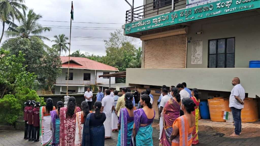 ಮಂಡೆಕೋಲು ಪ್ರಾಥಮಿಕ ಕೃಷಿ ಪತ್ತಿನ ಸಹಕಾರ ಸಂಘದಲ್ಲಿ ಸ್ವಾತಂತ್ರ್ಯ ದಿನಾಚರಣೆಯ ಧ್ವಜಾರೋಹಣ ವನ್ನು ಸಹಕಾರ ಸಂಘದ ಅಧ್ಯಕ್ಷ ಸುರೇಶ್ ಕಣೆಮರಡ್ಕ ನೆರವೇರಿಸಿದರು.
