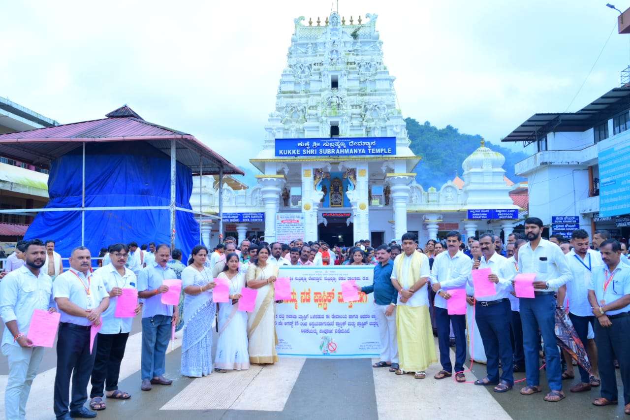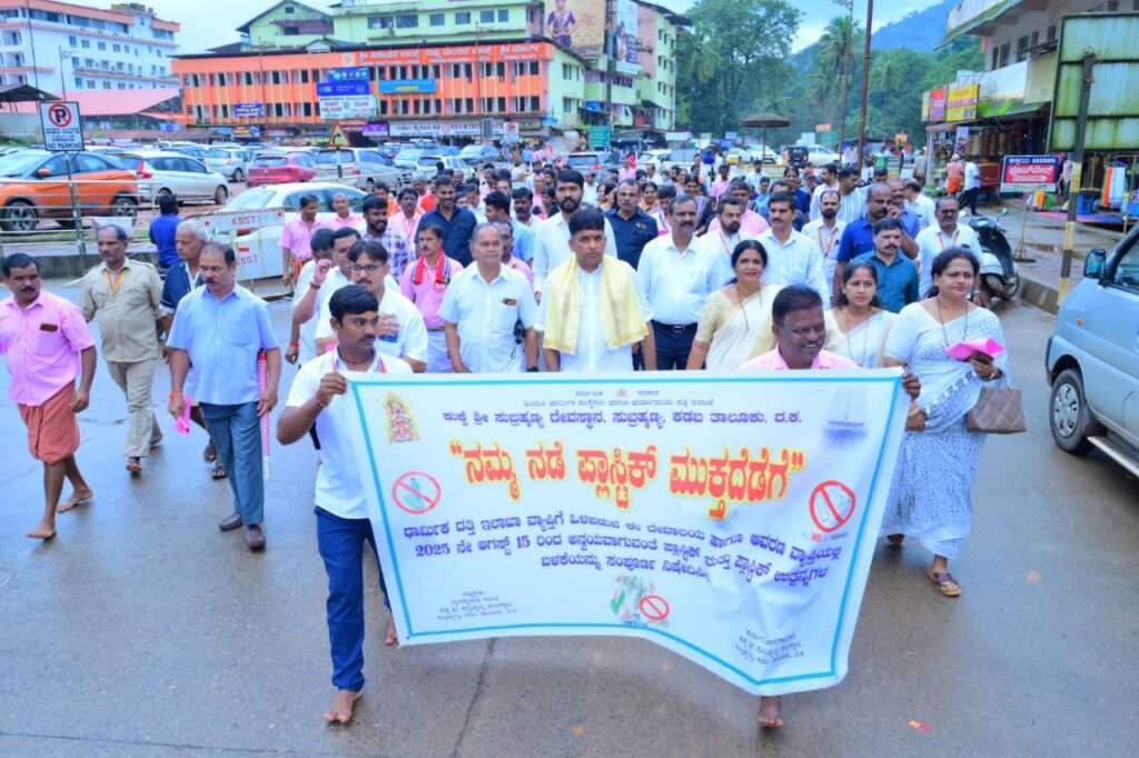 ನಮ್ಮ ನಡೆ ಪ್ಲಾಸ್ಟಿಕ್ ಮುಕ್ತದೆಡೆ ಅಭಿಯಾನಕ್ಜೆ ಸುಬ್ರಹ್ಮಣ್ಯದಲ್ಲಿ ಚಾಲನೆ ನೀಡಲಾಯಿತು. ದೇವಾಲಯದ ರಾಜ ಗೋಪುರದಿಂದ ಕಾಶಿಕಟ್ಟೆ ತನಕ ಜಾಥಾ ಕೈಗೊಳ್ಳಲಾಯಿತು. ಅಂಗಡಿಗಳಿಗೆ ತೆರಳಿ ಕರ ಪತ್ರ ಹಂಚಲಾಯಿತು.